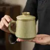 Taza de cerámica creativa para beber té, taza de oficina, taza de té con separación de té con tapa y filtro.