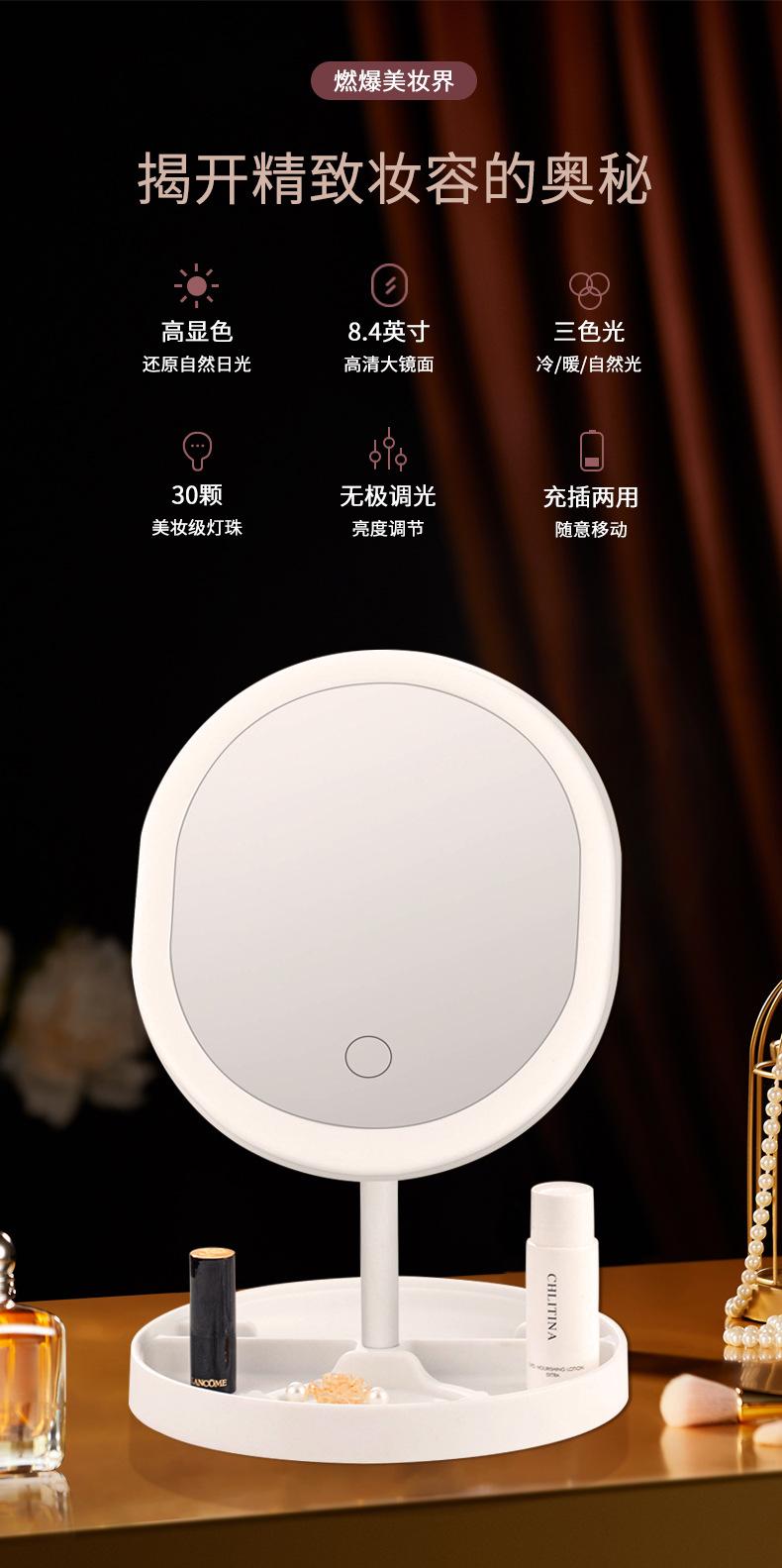 Espejo de maquillaje LED con luz, espejo de escritorio portátil, espejo de relleno inteligente, espejo de carga para dormitorio de estudiantes, estilo Ins