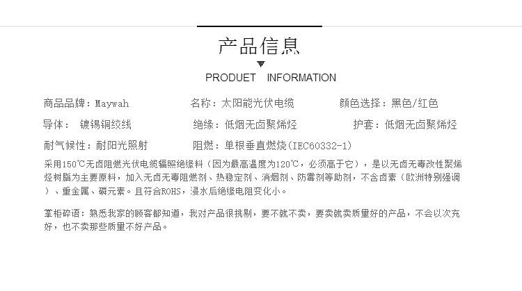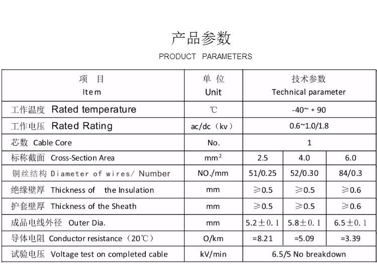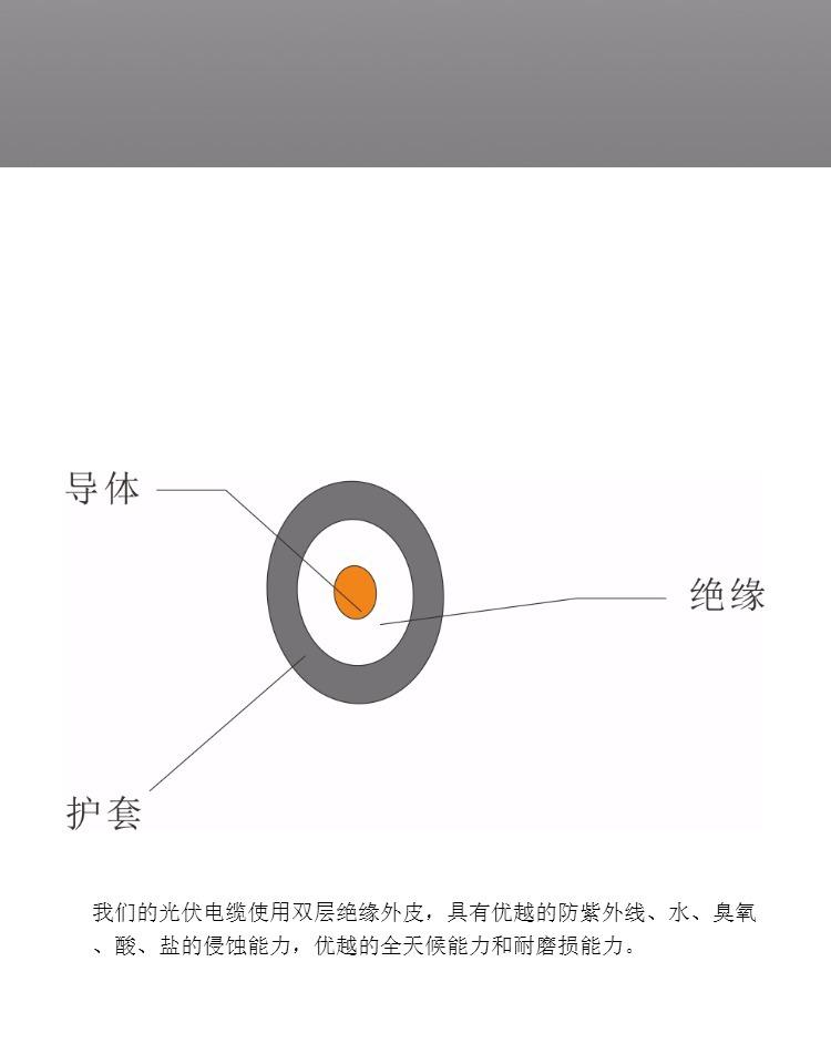 Cable fotovoltaico de 4 niveles, cable unipolar con aislamiento de doble capa, antienvejecimiento, impermeable y de acuerdo con la norma nacional.