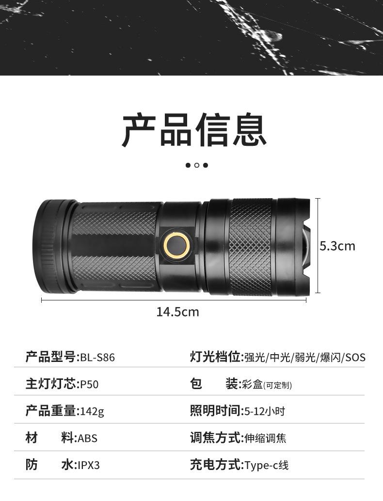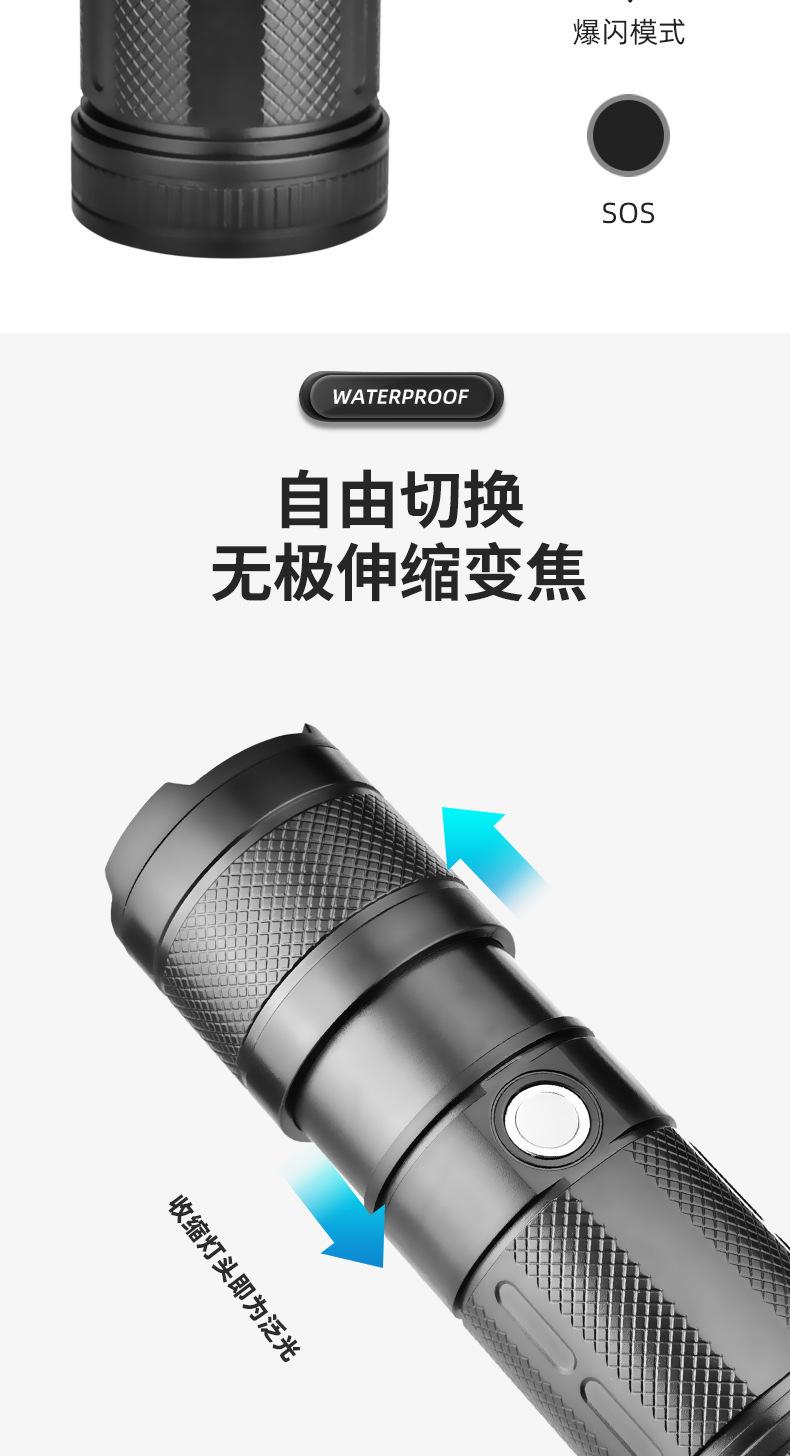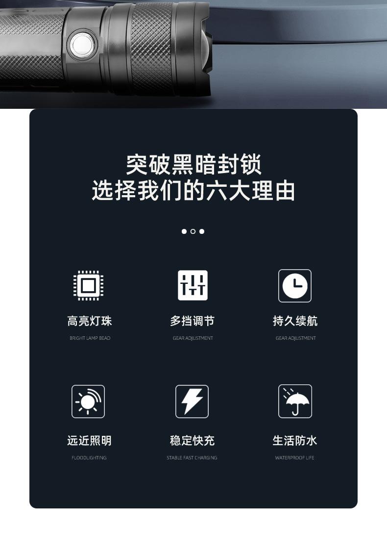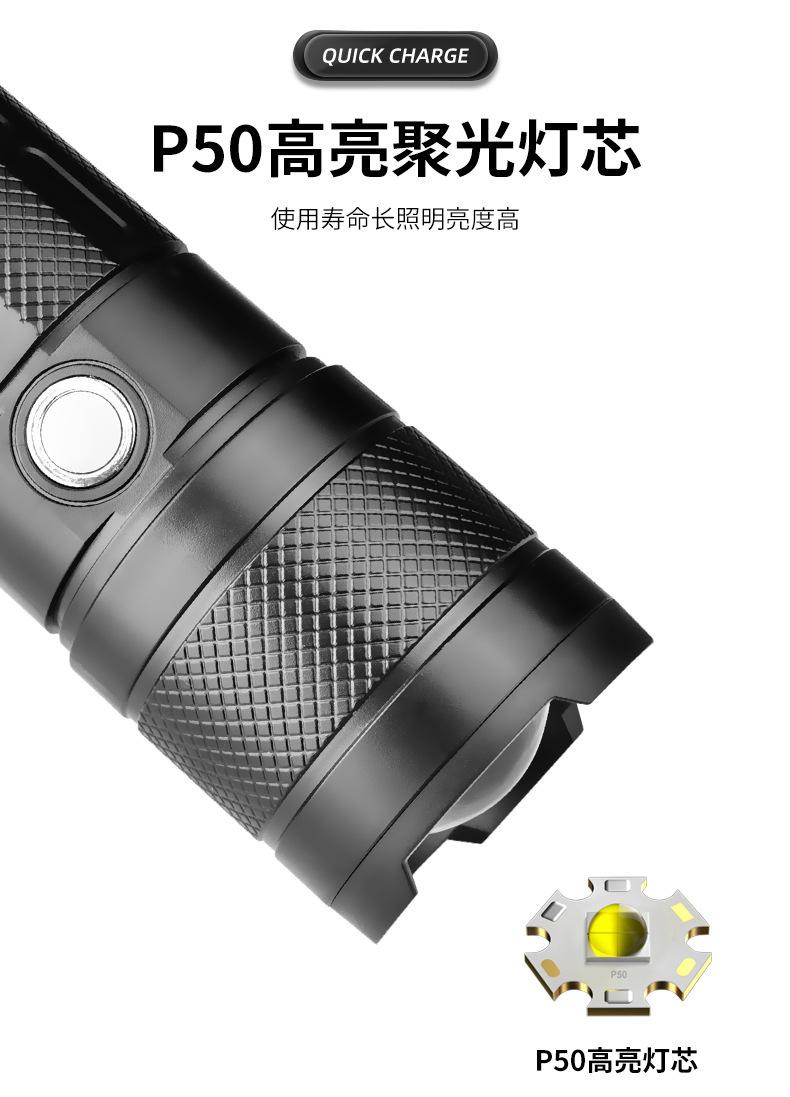 Linterna de luz potente transfronteriza de carga súper brillante de largo alcance para exteriores, portátil, multifuncional, linterna LED láser blanca, luz de trabajo