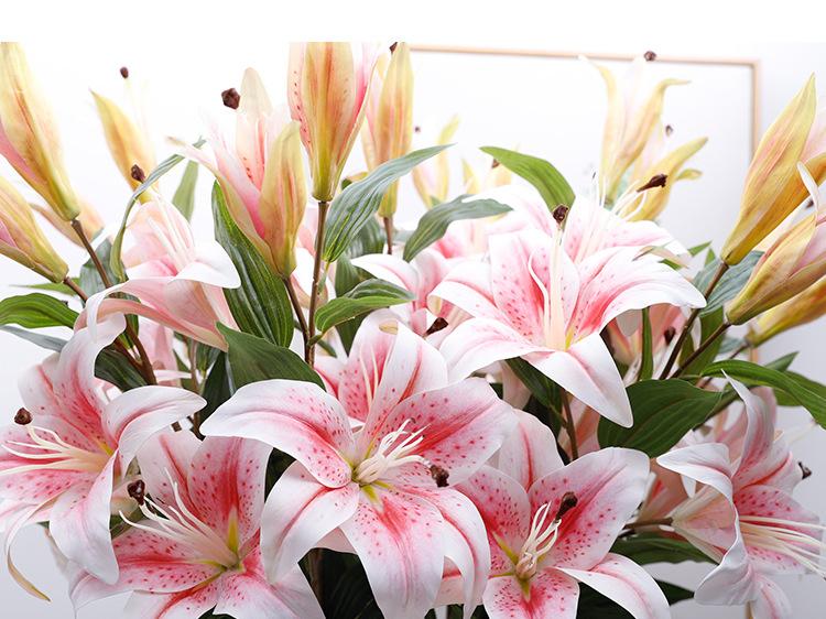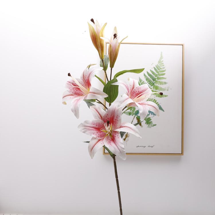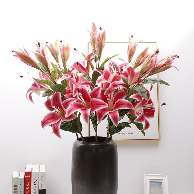 Simulación de lirio individual de 5 cabezas, sensación de flor falsa, decoración, suministros para bodas, decoración fotográfica, flor de simulación de lirio