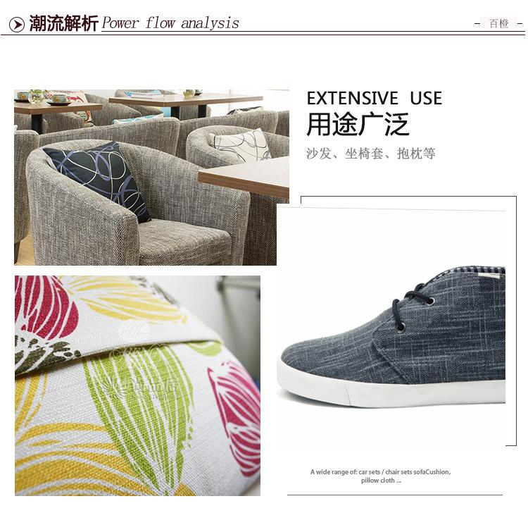 El tejido tipo lino se refiere a un tejido hecho de hilo de torsión fuerte de poliéster o poliéster/viscosa tejido en ligamento tafetán o sarga, que tiene el tacto seco de la fibra de lino.No solo luce áspero, se siente seco, es resistente al desgaste y de alta resistencia, sino que también es cómodo y fresco de llevar.Adecuado para hacer sofás, almohadas, camisas y vestidos de verano.
