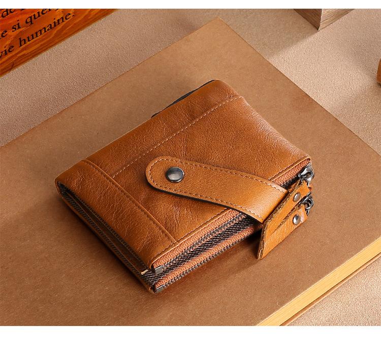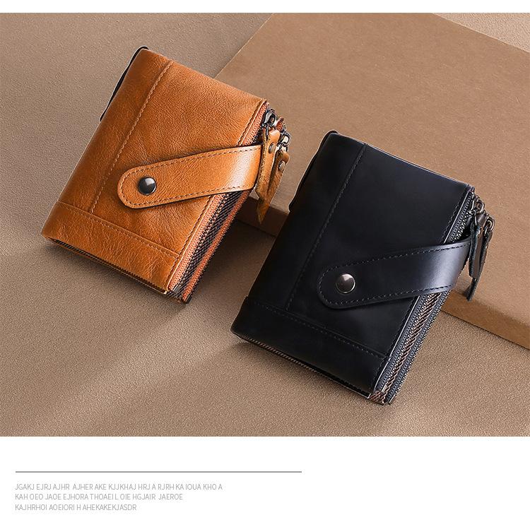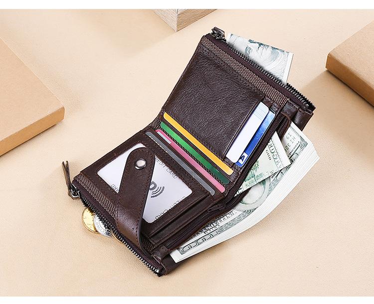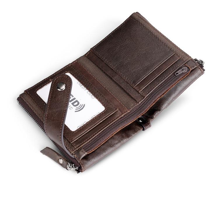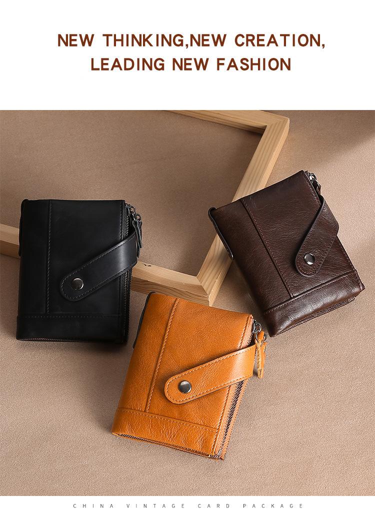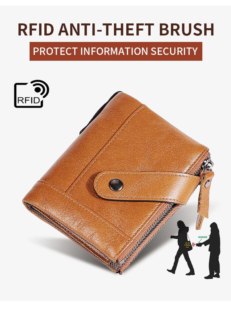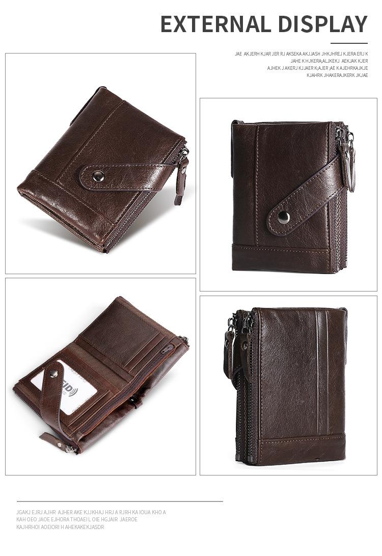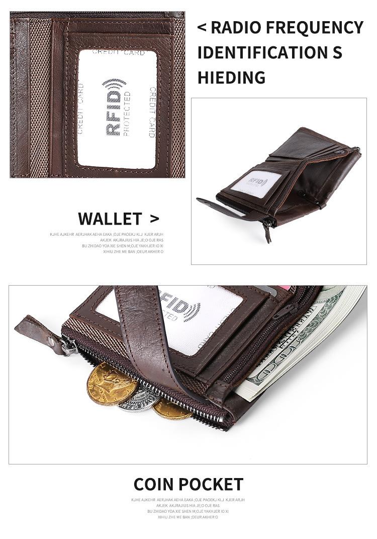 Billetera Creativa Nueva de Cuero Genuino para Hombre RFID Antimagnética Europea y Americana con Ranuras para Tarjetas Multifuncional de Piel de Vaca Encerada al Aceite Monedero