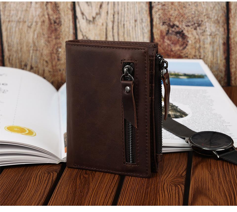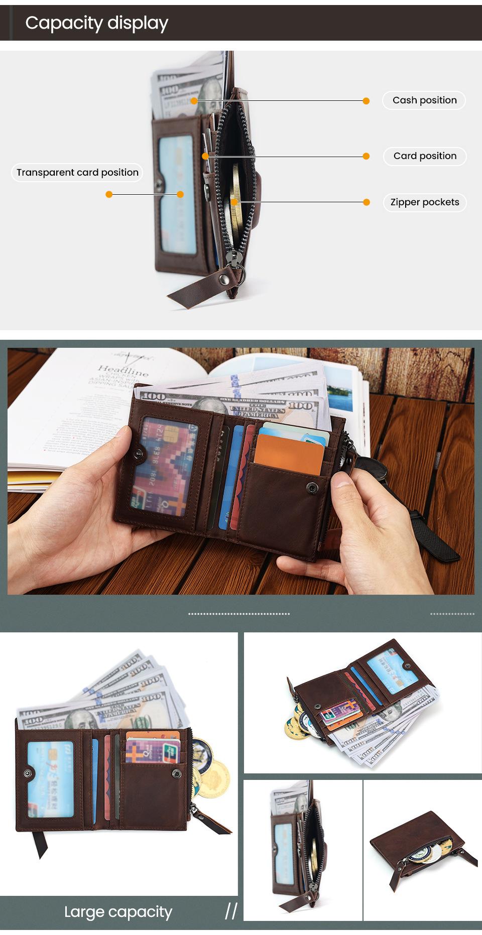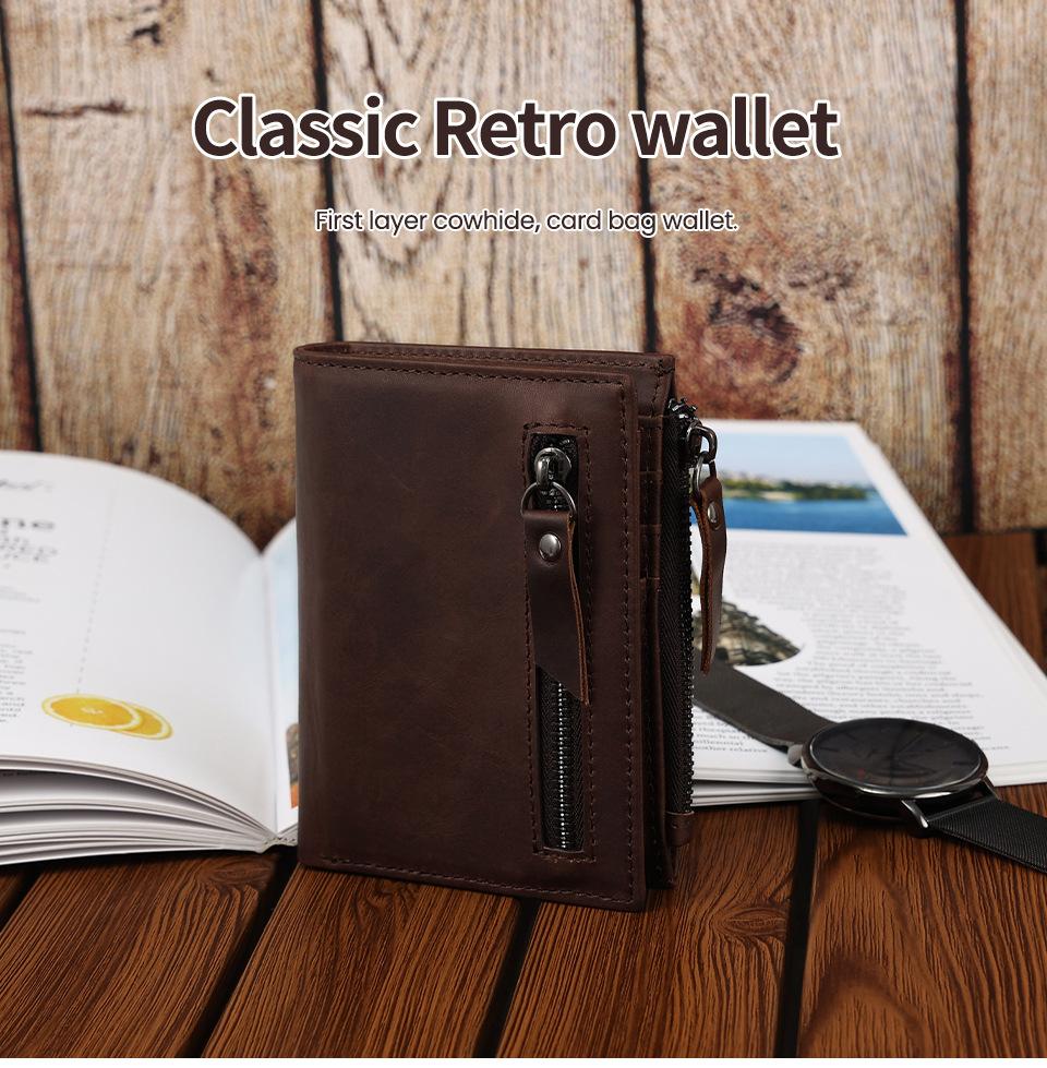 Cartera de cuero genuino retro transfronteriza, monedero corto, cartera retro multitarjeta, cartera de piel de vaca de capa superior para hombre