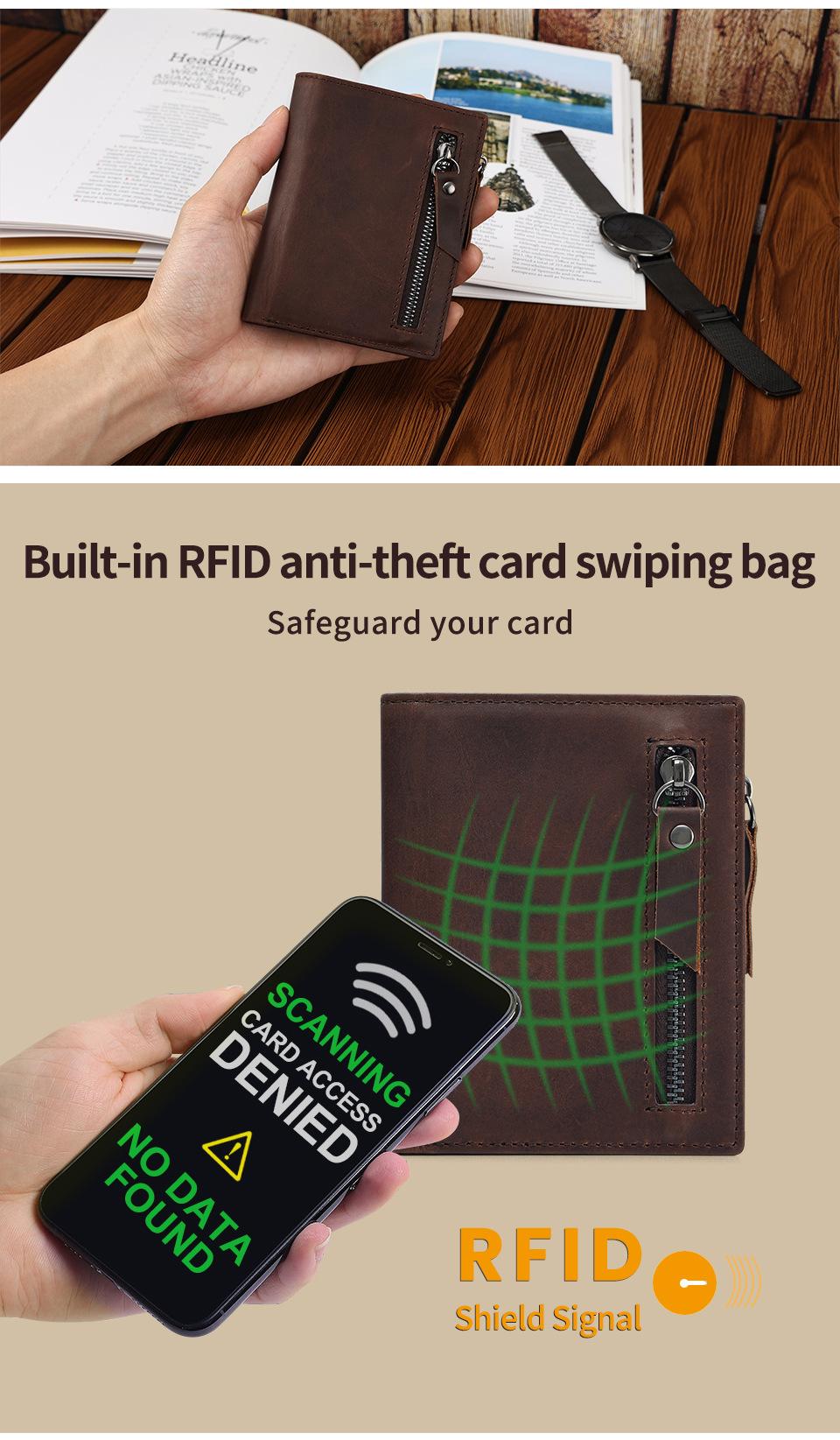 Cartera para hombre de gran venta transfronteriza con ranura para múltiples tarjetas RFID, billetera de cuero retro informal, cartera con hebilla de gran capacidad para hombre
