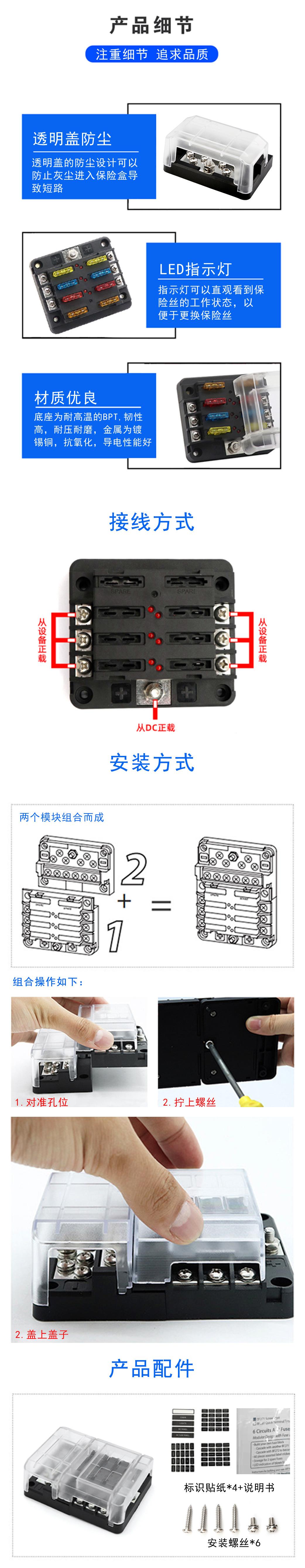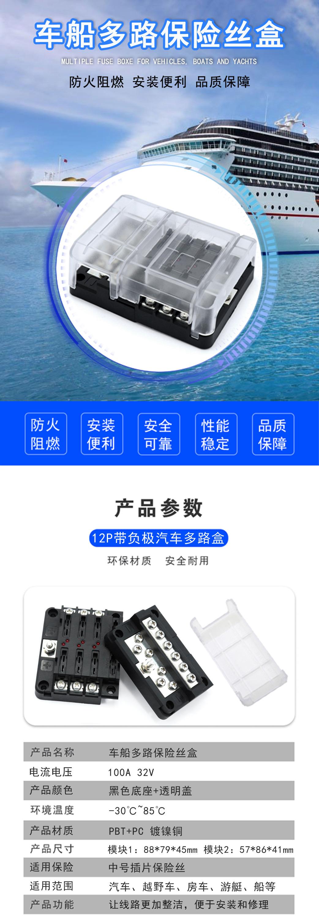 Función del producto: Los cables negativos de cualquier aparato eléctrico en el coche/barco (luces de techo, faros del coche, luces de posición, luces antiniebla, luces de advertencia, refrigeradores de coche, cargadores de coche, ventiladores de coche, etc.) se pueden agregar en esta barra colectora, lo que puede hacer que los cables estén más ordenados y claros, el uso de electricidad más seguro, y es más conveniente reparar el circuito en el futuro.