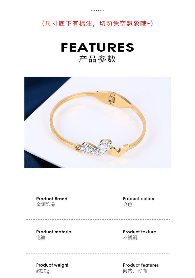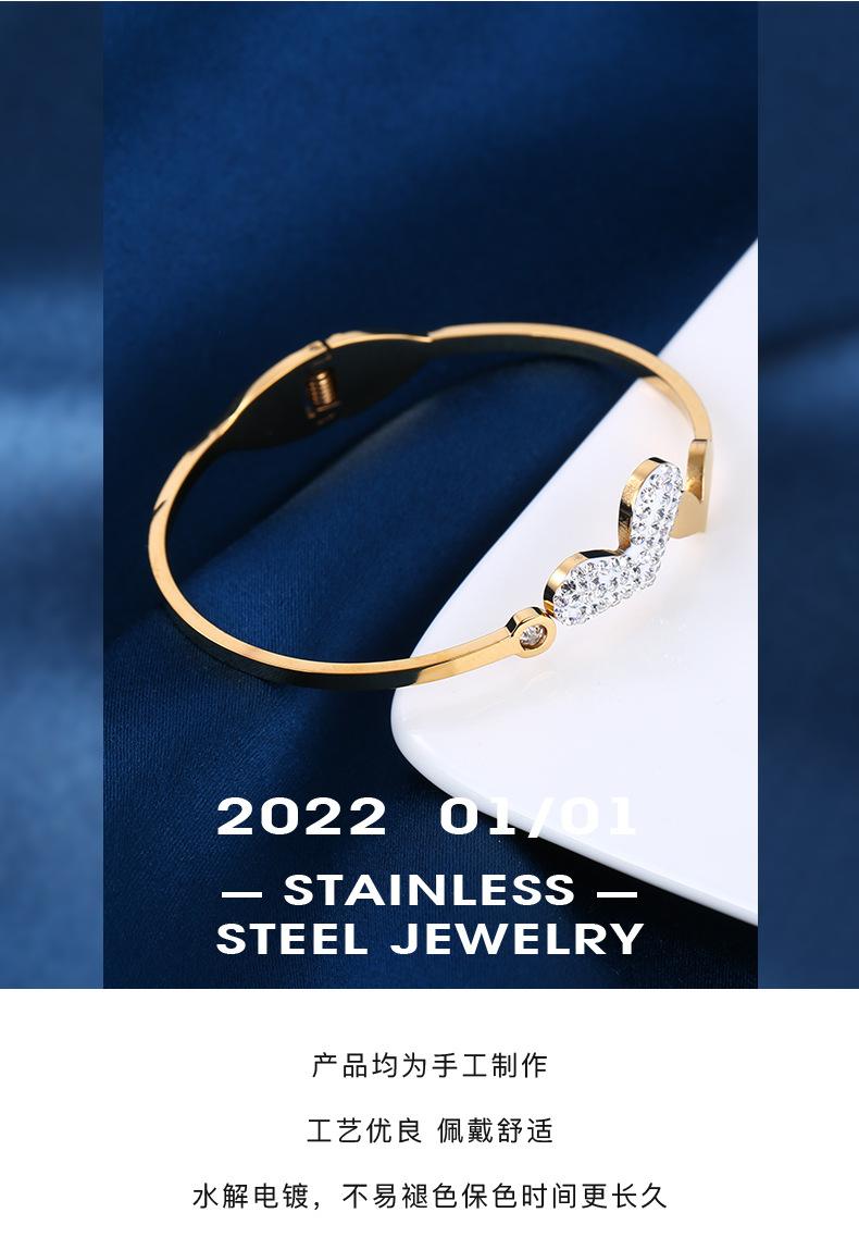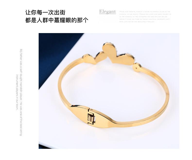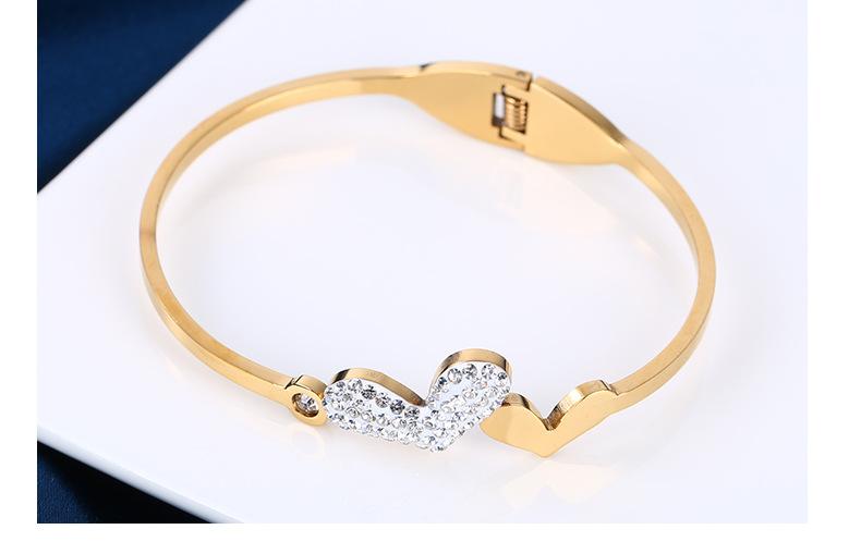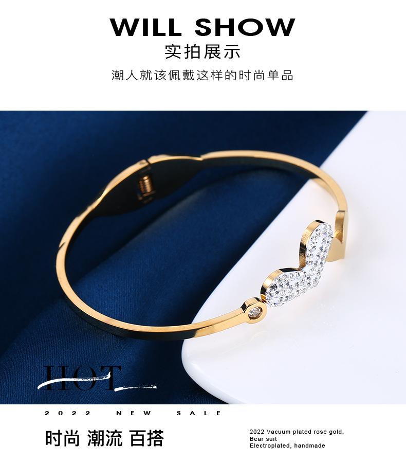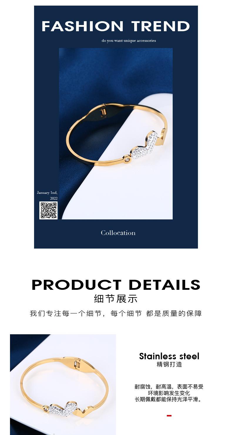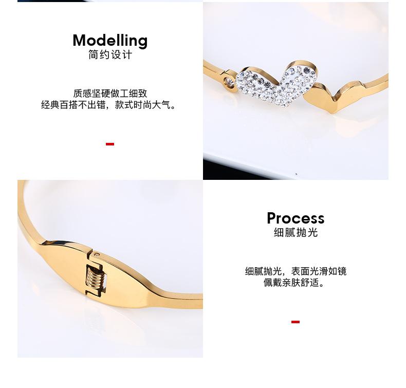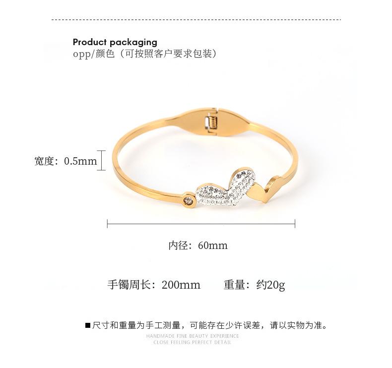 Pulsera de acero inoxidable con forma de corazón de melocotón personalizada estilo europeo y americano, pulsera de moda con forma de corazón de acero de titanio brillante, pulsera de circonitas para mujer