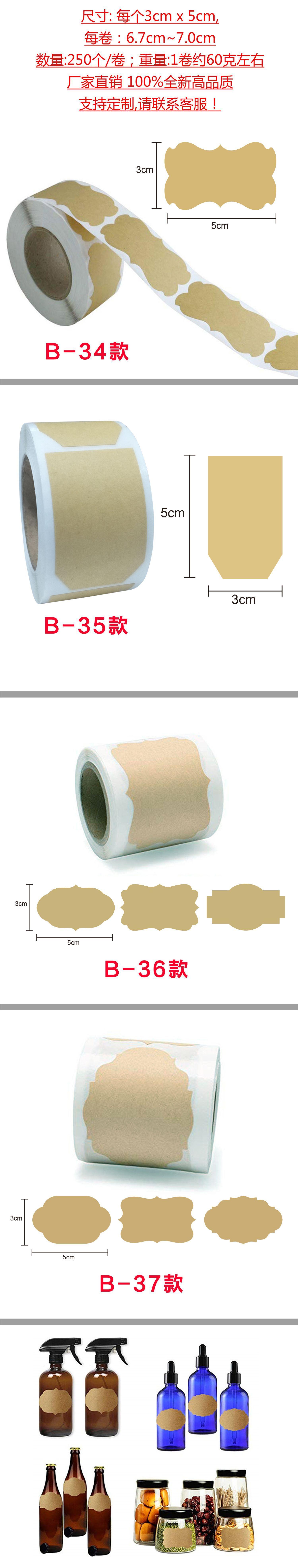 Etiqueta Adhesiva Personalizada Popular Transfronteriza Marrón Claro en Blanco Papel Kraft Etiqueta Adhesiva Etiqueta de Nombre