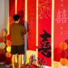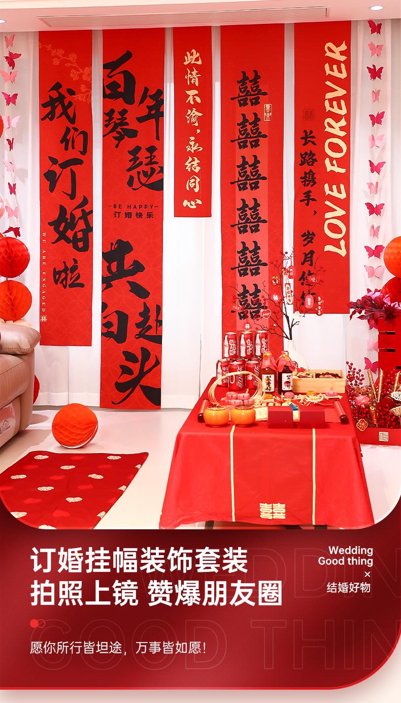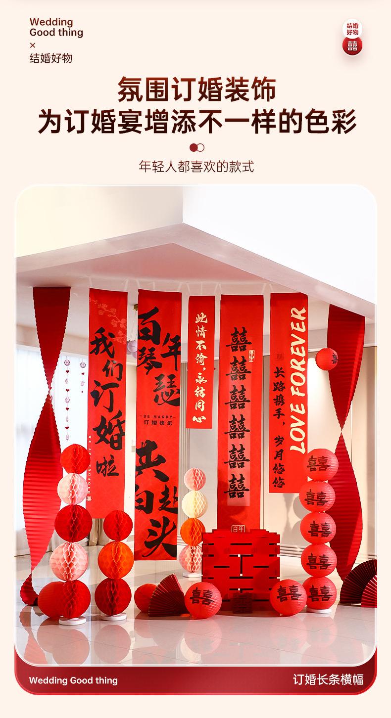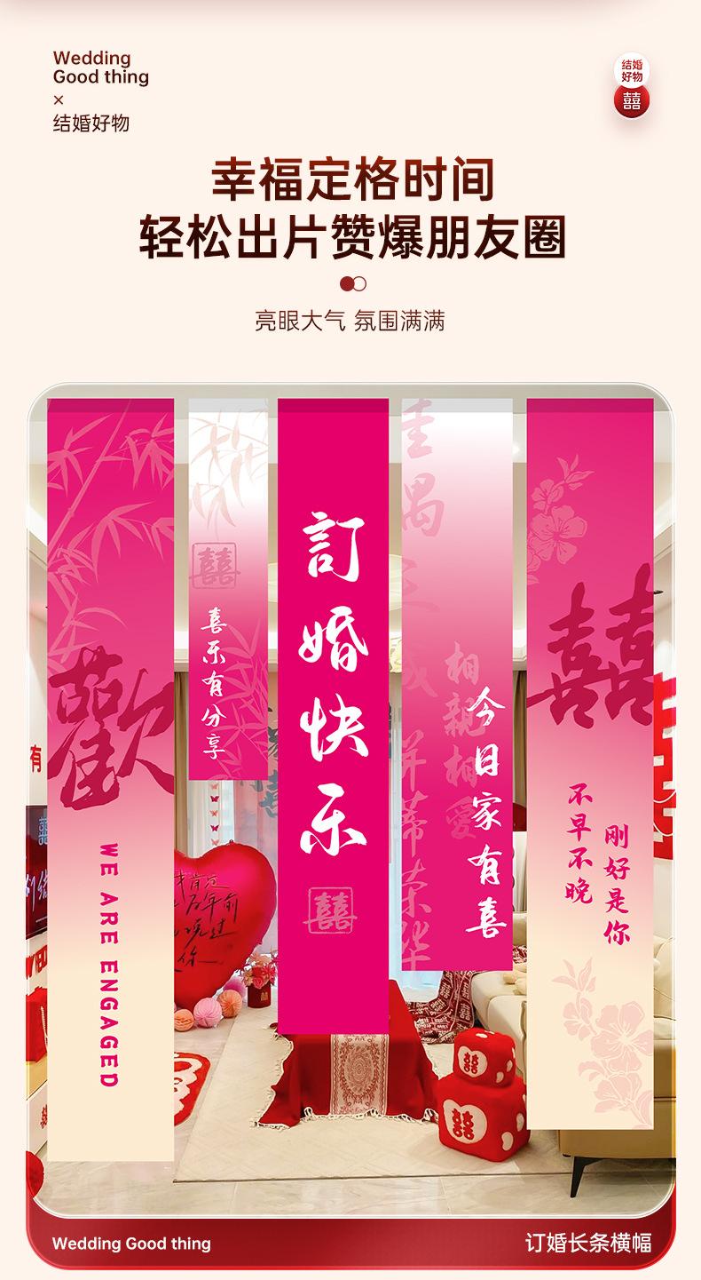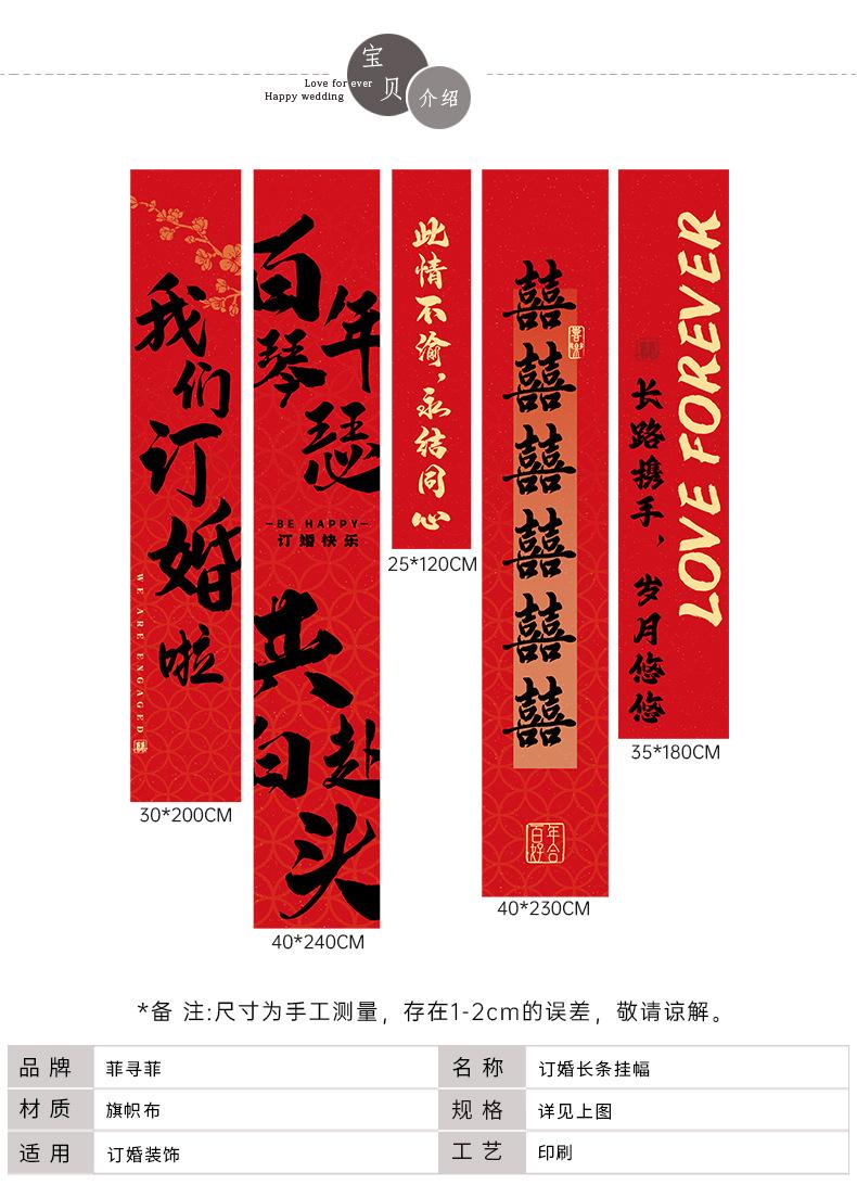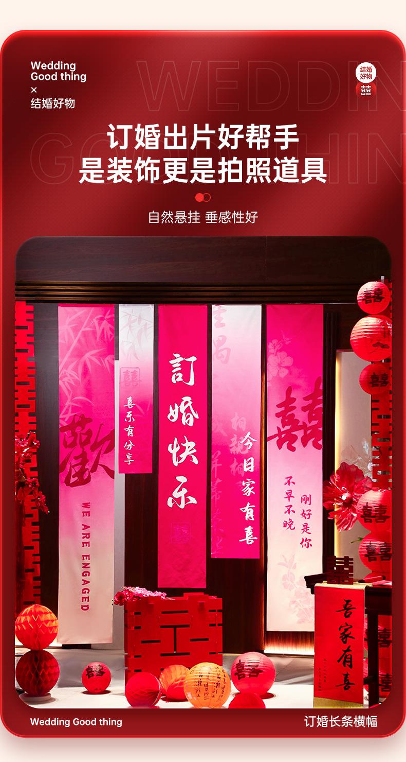 Decoración de diseño de habitación de bodas tela colgante súper larga bata accesorios para sesión de fotos fondo compromiso casa nueva boda sala de estar dormitorio banner banner de compromiso decoración caligrafía tela colgante juego de diseño de habitación de bodas fondo de banquete de compromiso ceremonia boda flor de tirar