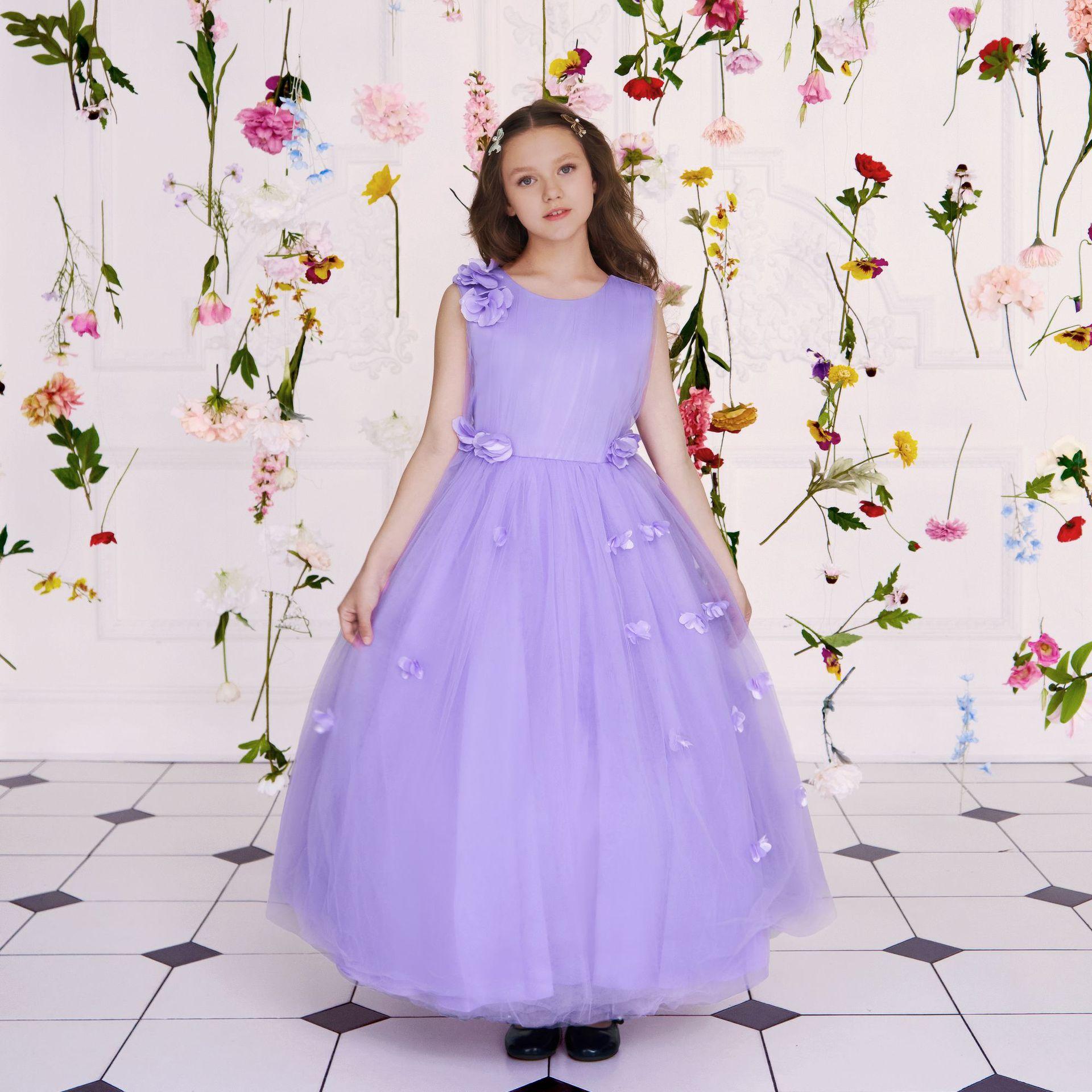 Nuevo Vestido Europeo y Americano Transfronterizo para Niños Vestido de Princesa de Malla Calcomanías para Niños Grandes y Vestido Largo Vestido para Actuación de Piano