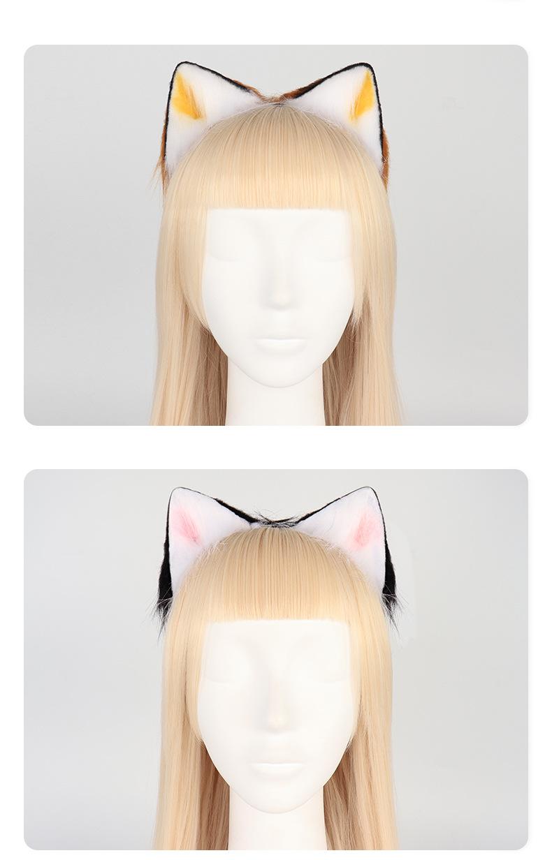 Diadema con orejas de animal personalizada, hecha a mano, con simulación de gato, accesorios de peluche para orejas de gato.