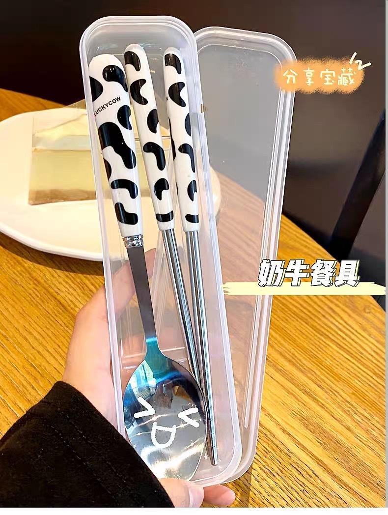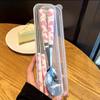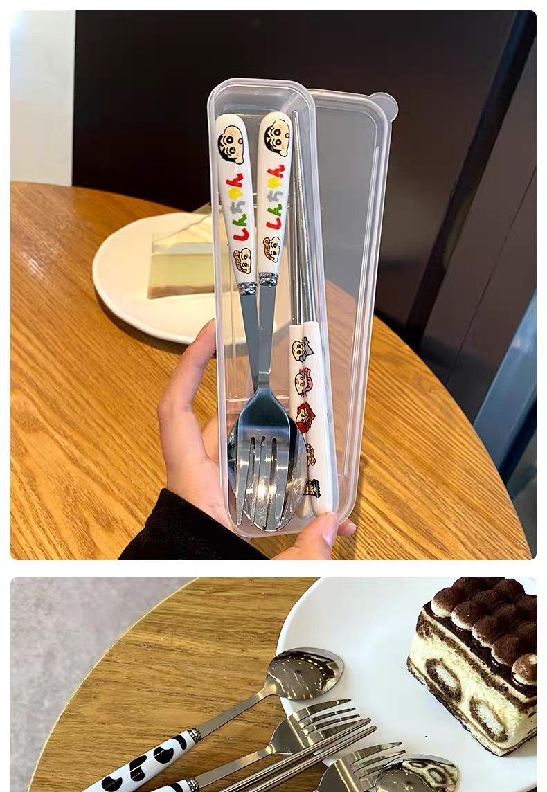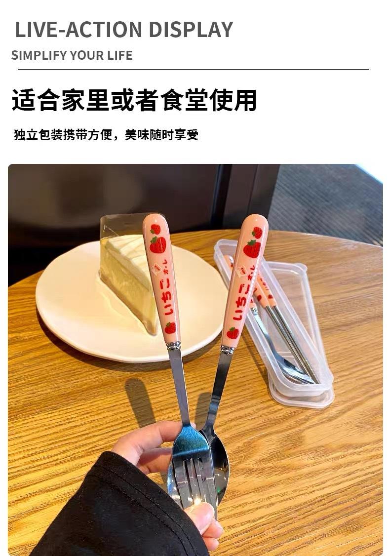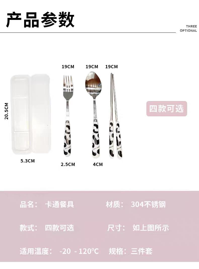 Lindos palillos de acero inoxidable, cuchara, traje para estudiante femenina, cuchara, tenedor, vajilla infantil de tres piezas de aspecto alto