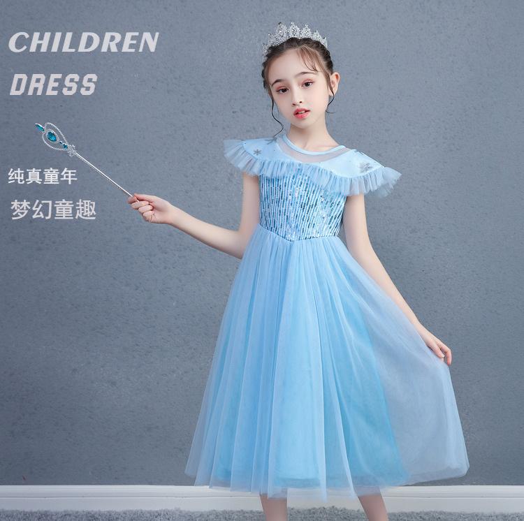 Vestido de princesa Elsa para niñas, verano 2024, manga corta, nuevo vestido de cumpleaños de Elsa para niños de Frozen.