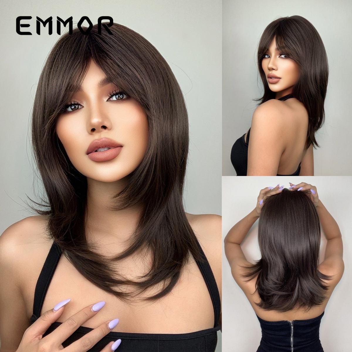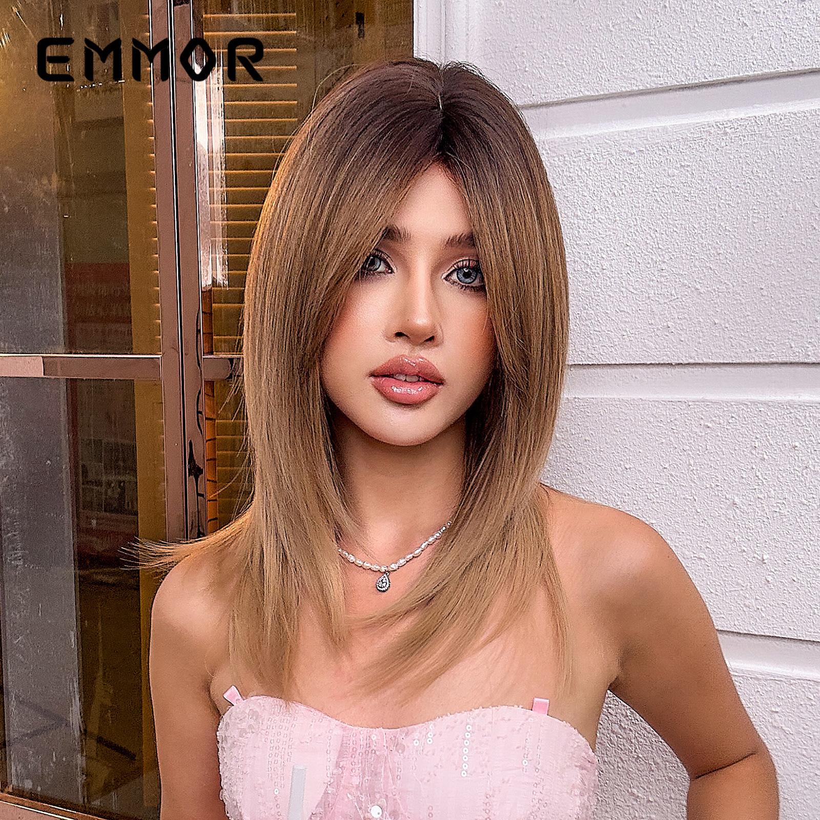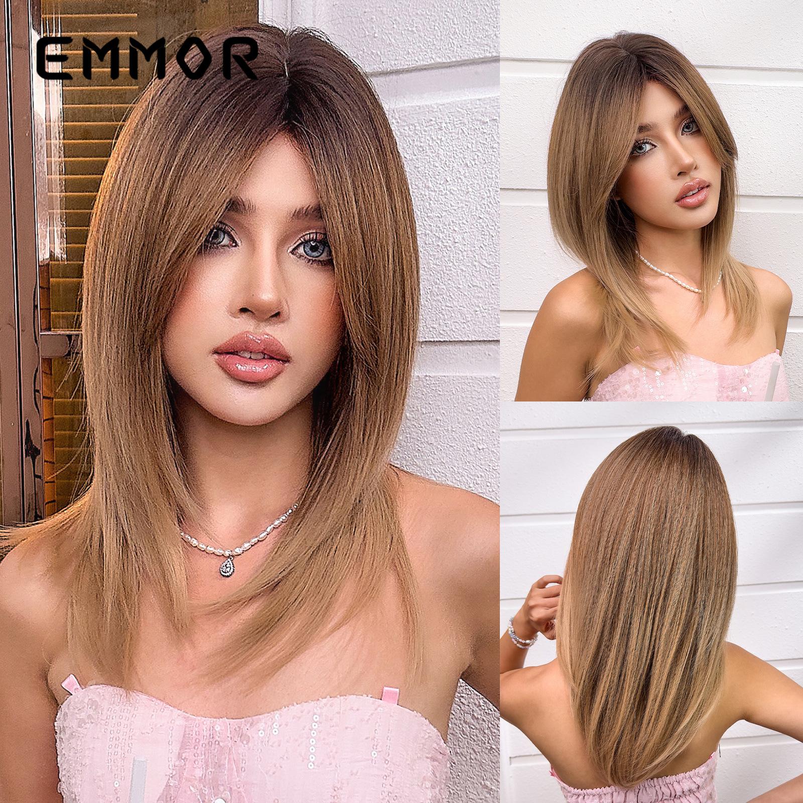 Peluca para mujer, peinado de cabello largo natural, cobertura completa de cabeza, rojo de internet, cara redonda, clavícula, cabello largo, reductor de edad, simulación, peluca mediana larga con cobertura