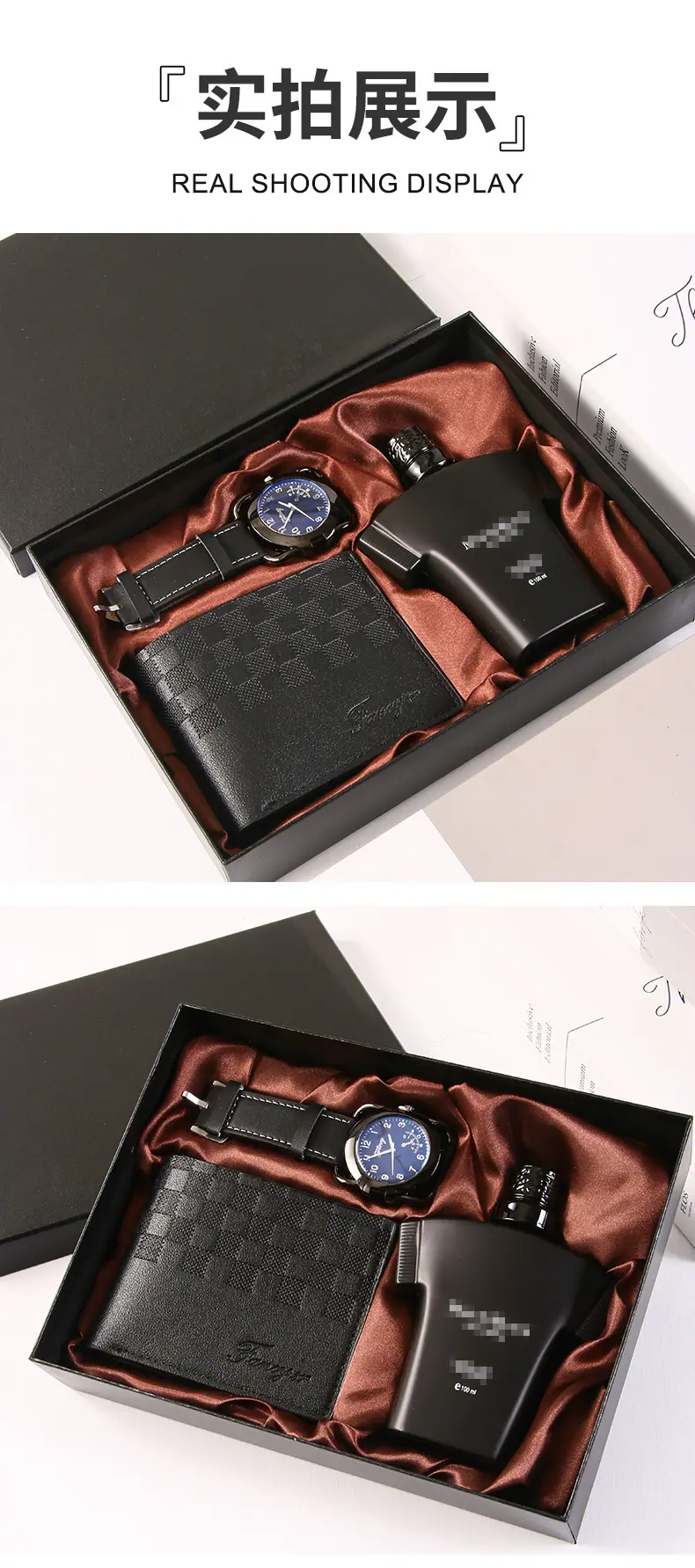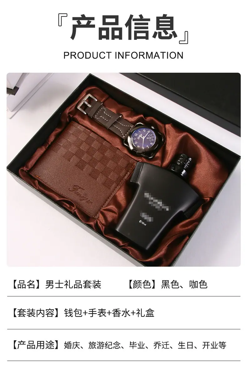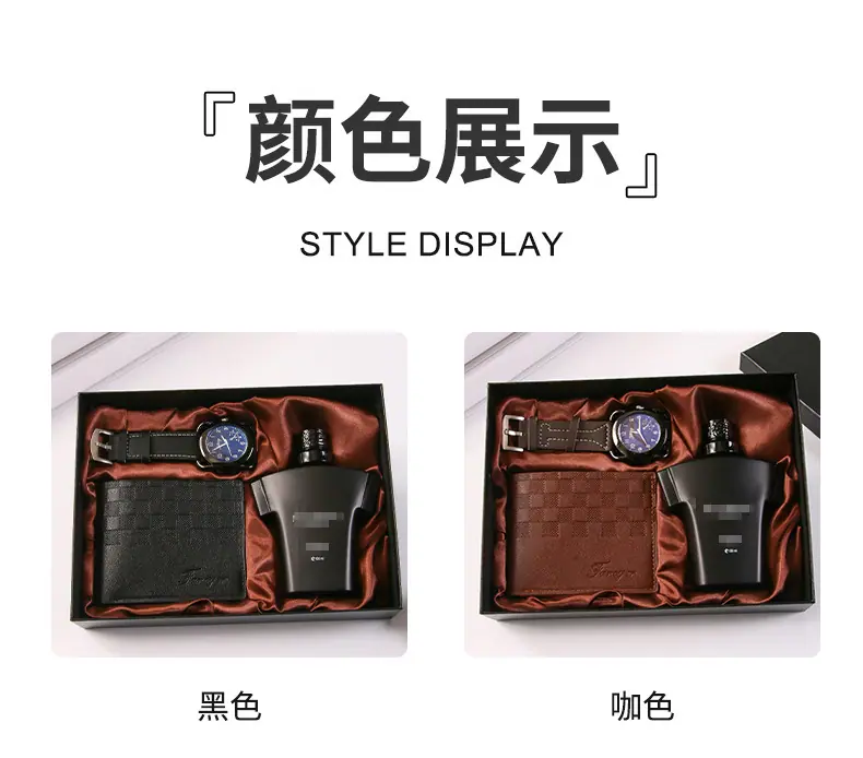 4-piece set black (perfume + watch + wallet + exquisite gift box), 4-piece set in coffee color (perfume + watc...