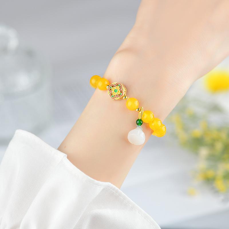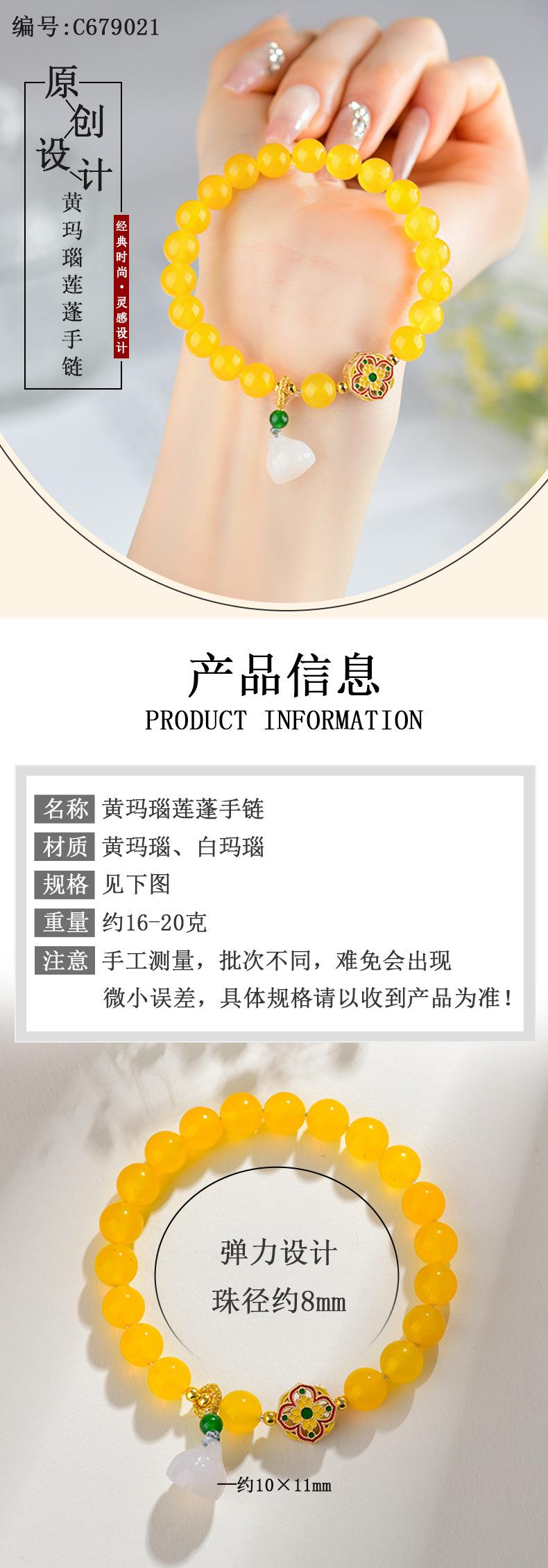 【Nombre del producto】: Pulsera de loto de ágata amarilla