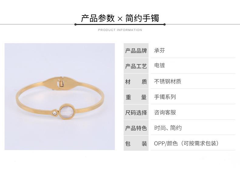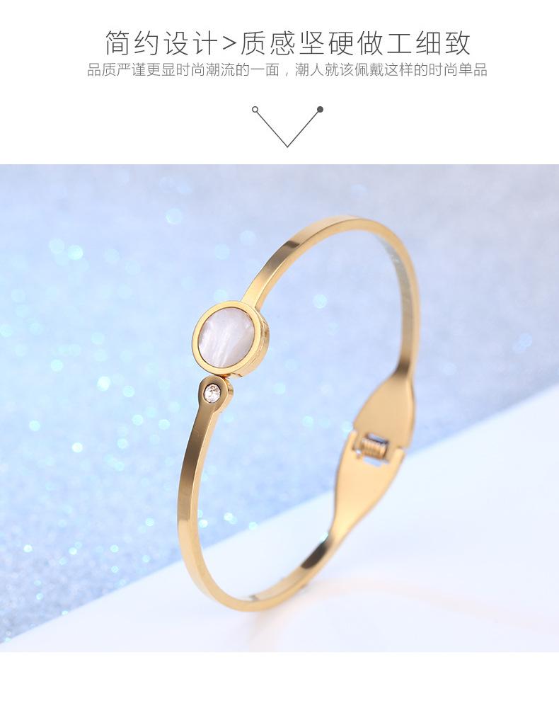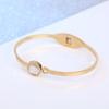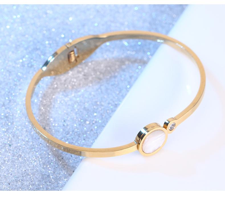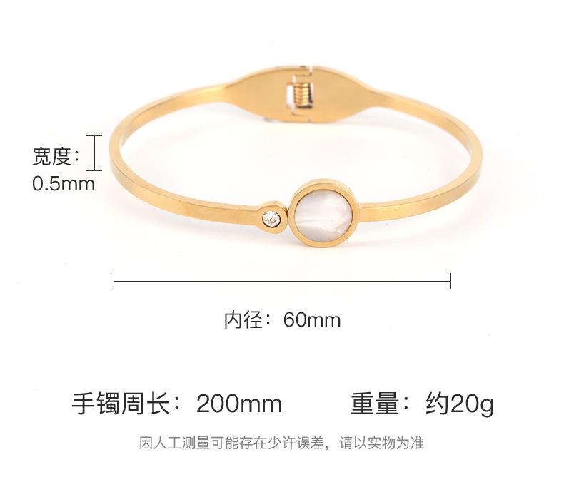 Pulsera sencilla de acero inoxidable estilo coreano con nácar blanco y diamantes, lujo ligero de alta gama, concha redonda, acero de titanio, joyería