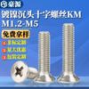 Tornillo de cabeza plana con ranura en cruz, niquelado KM, zincado azul y blanco, GB819, tornillo mecánico avellanado de acero al carbono