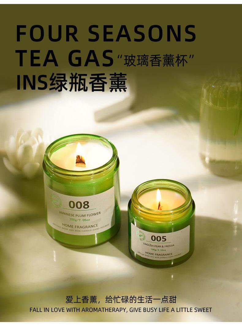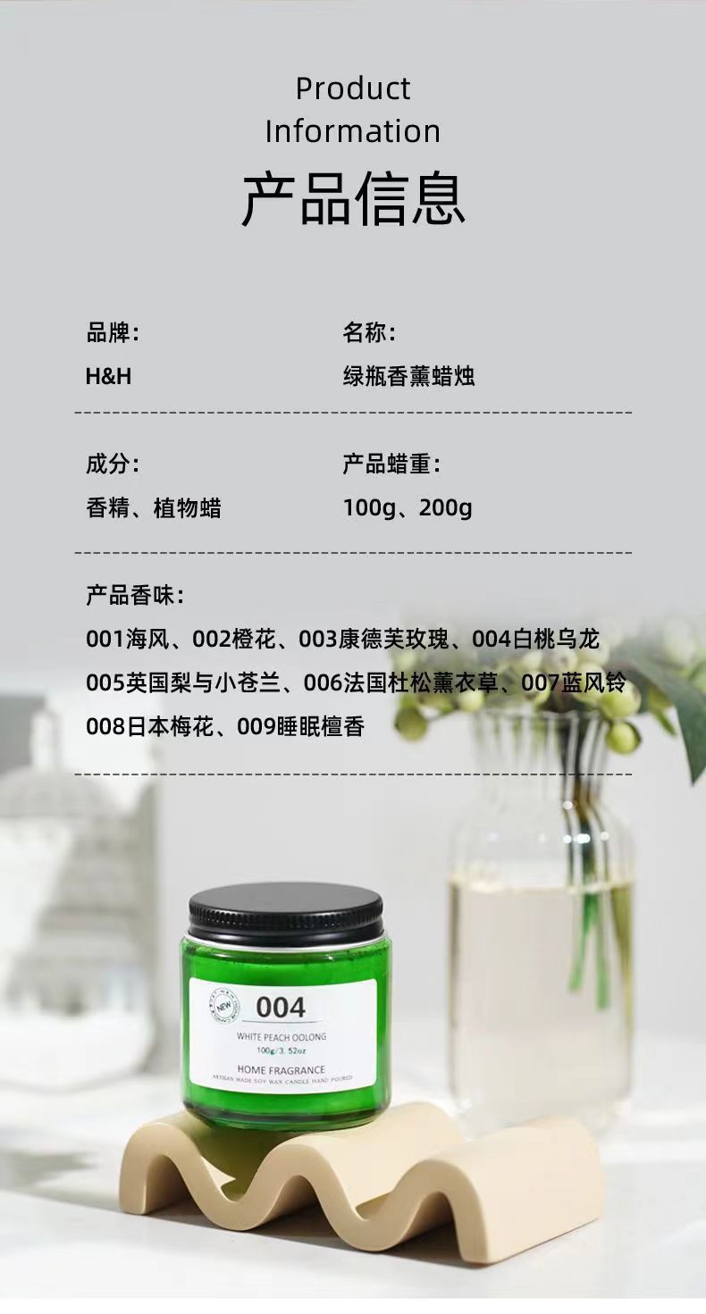 Garrafa verde óleo essencial aromaterapia vela quarto incenso ajudar a dormir fragrância fragrância expansão artesanal cera de soja presente presente mão
