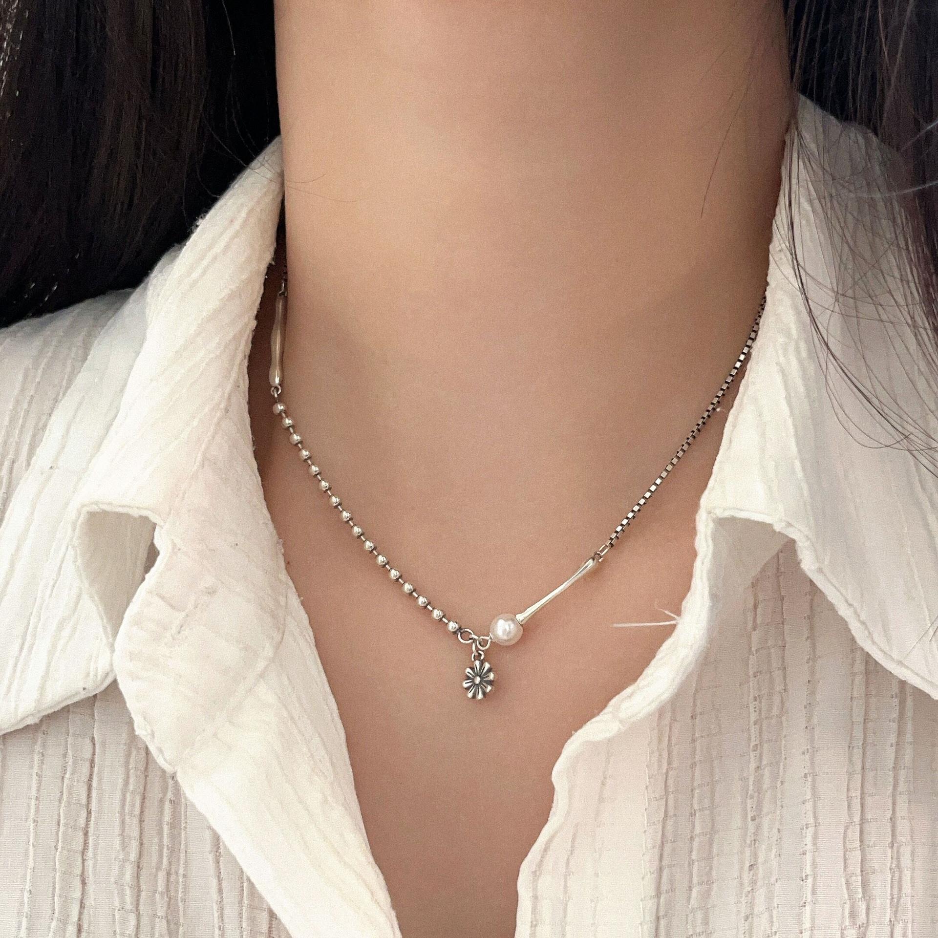 Collar de plata Ruitai s925 de plata pura con diseño de red roja dulce y fresco para mujer, collar de cadena de clavícula de alta calidad, ligero y de lujo que combina con todo.