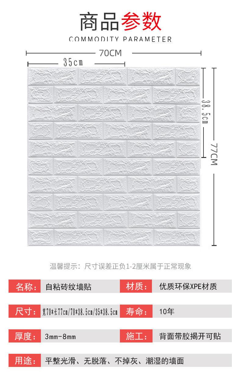 Papel Tapiz Adhesivo de Pared de Espuma 3D Decoración de Habitación de Alquiler Venta al por Mayor Pared de Fondo Anticolisión Bolsa Suave Papel Tapiz Impermeable