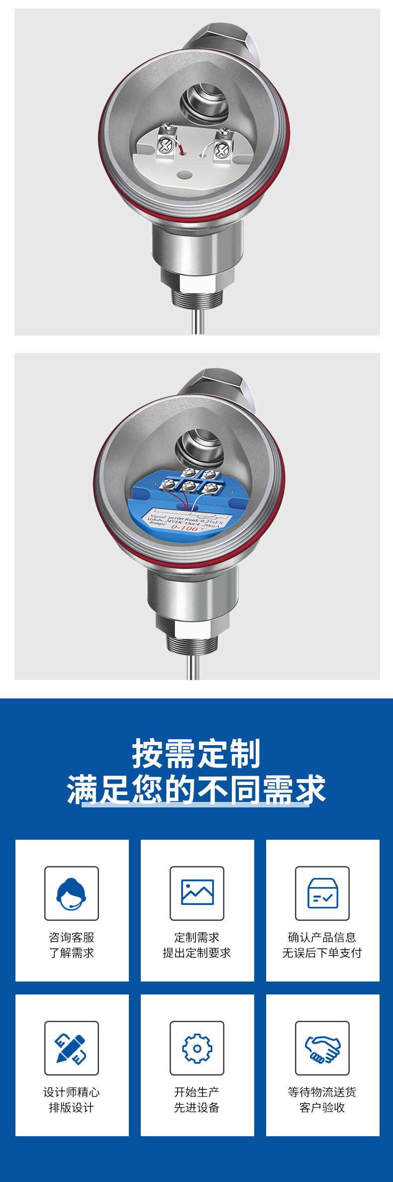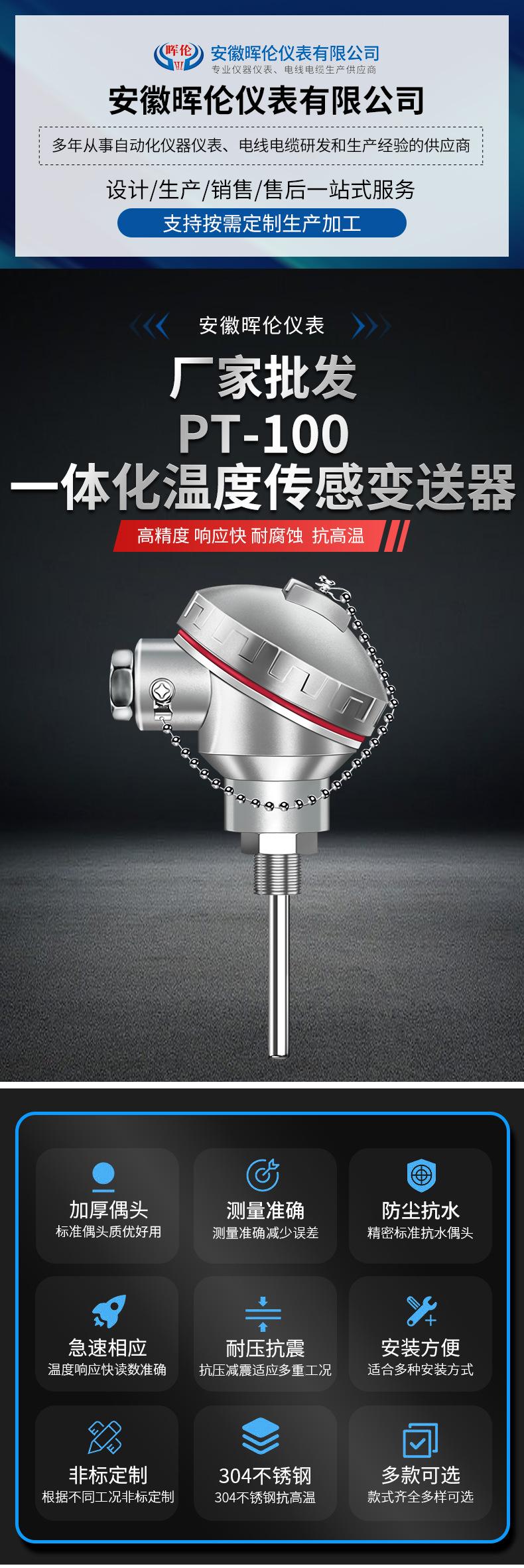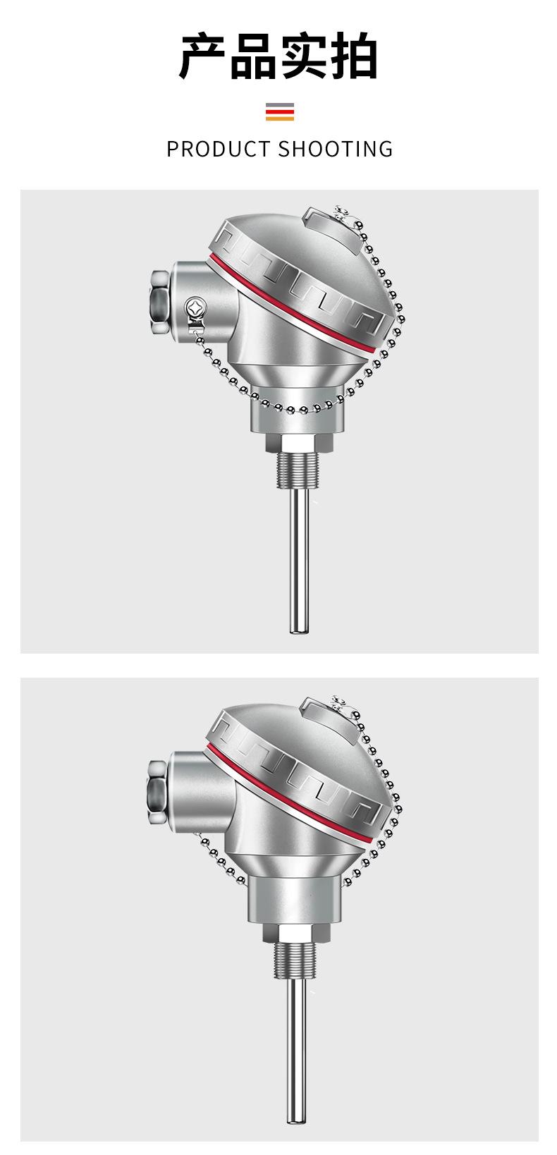 Sensor de temperatura pt100 de termopar de alta temperatura, sonda de resistencia térmica de platino blindado tipo K, transmisor de temperatura integrado.
