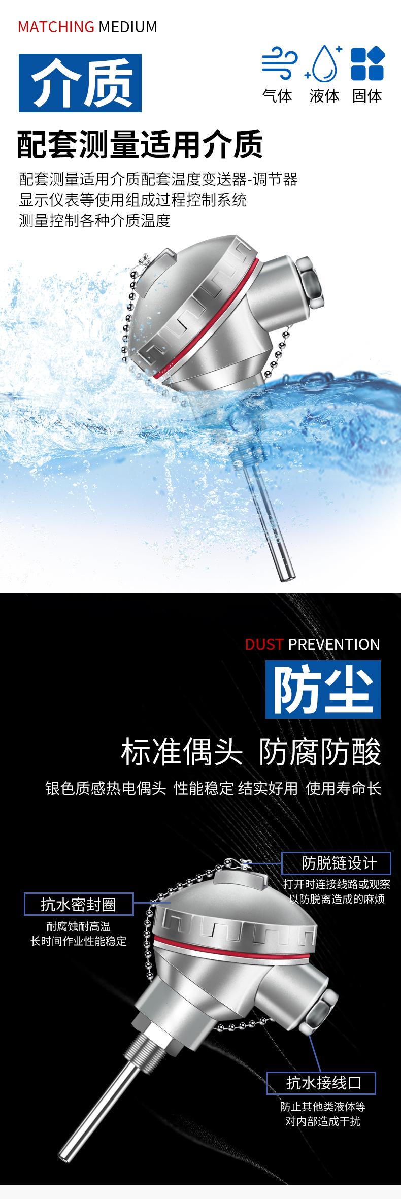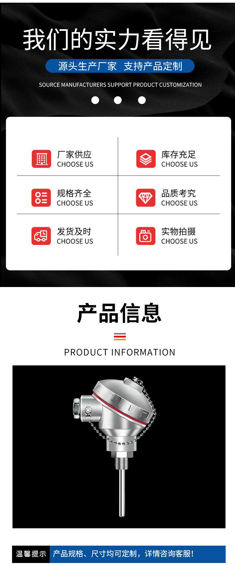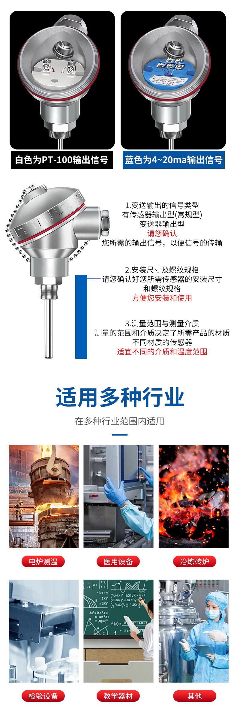 Sensor de temperatura pt100 de termopar de alta temperatura, sonda de resistencia térmica de platino blindado tipo K, transmisor de temperatura integrado.