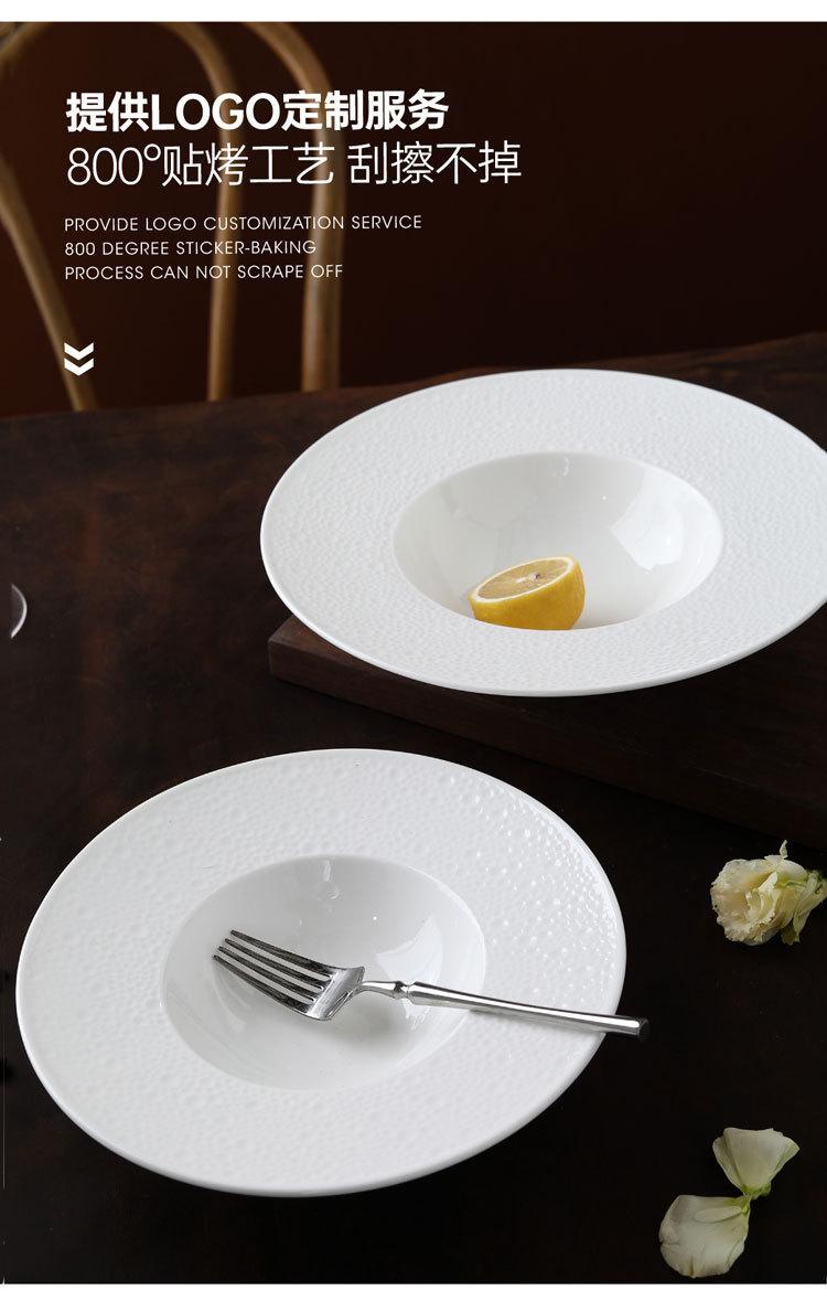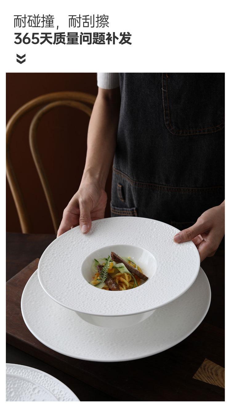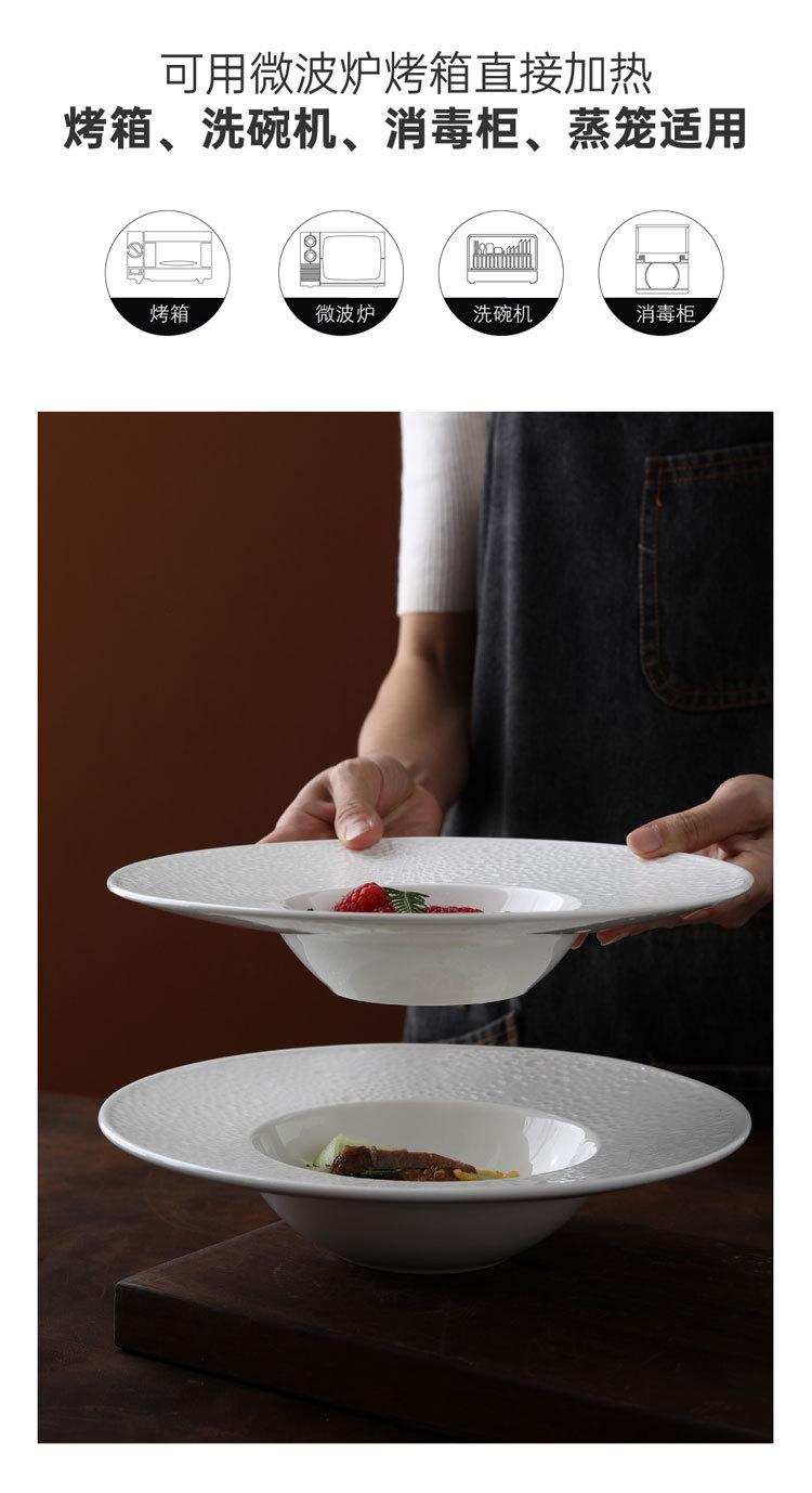 Plato de cerámica blanca pura con forma de sombrero de paja, plato para pasta, plato para dim sum, plato para comida occidental, vajilla sencilla de estilo europeo, plato para sopa para el hogar.
