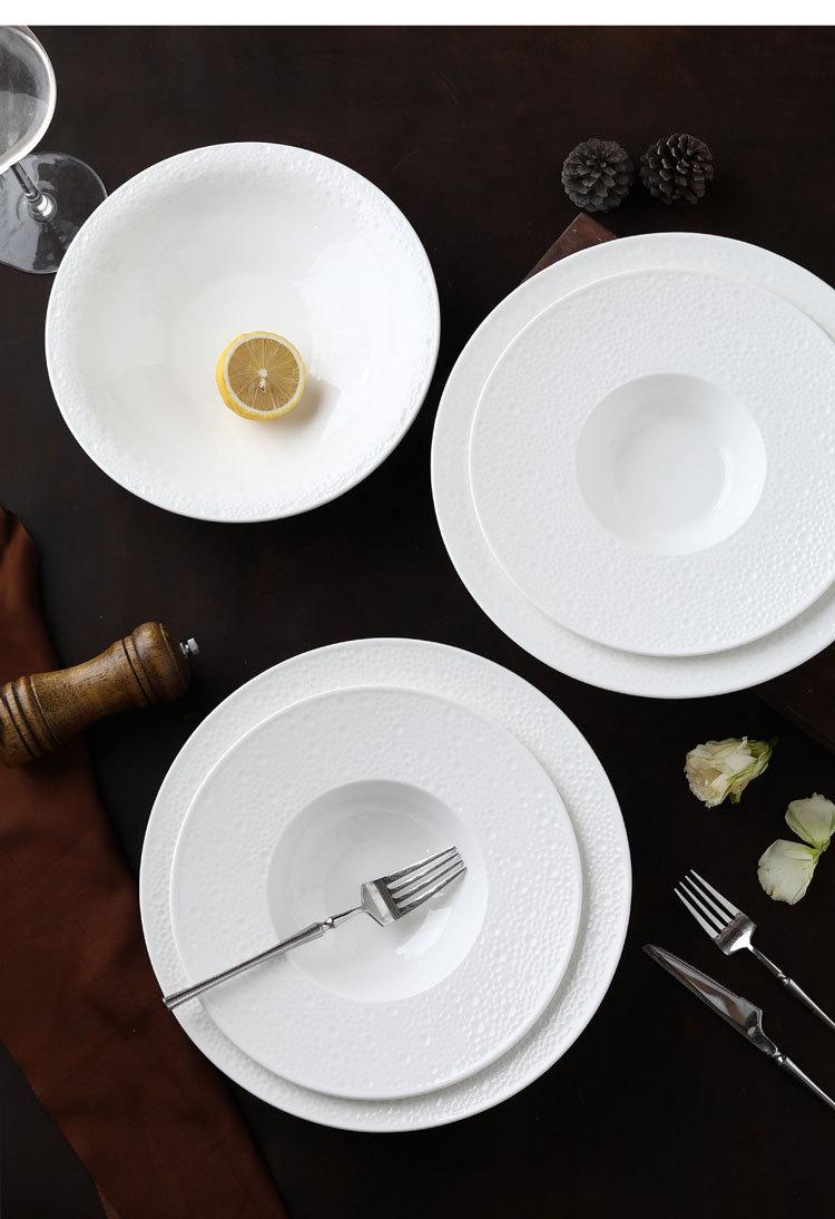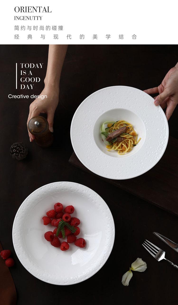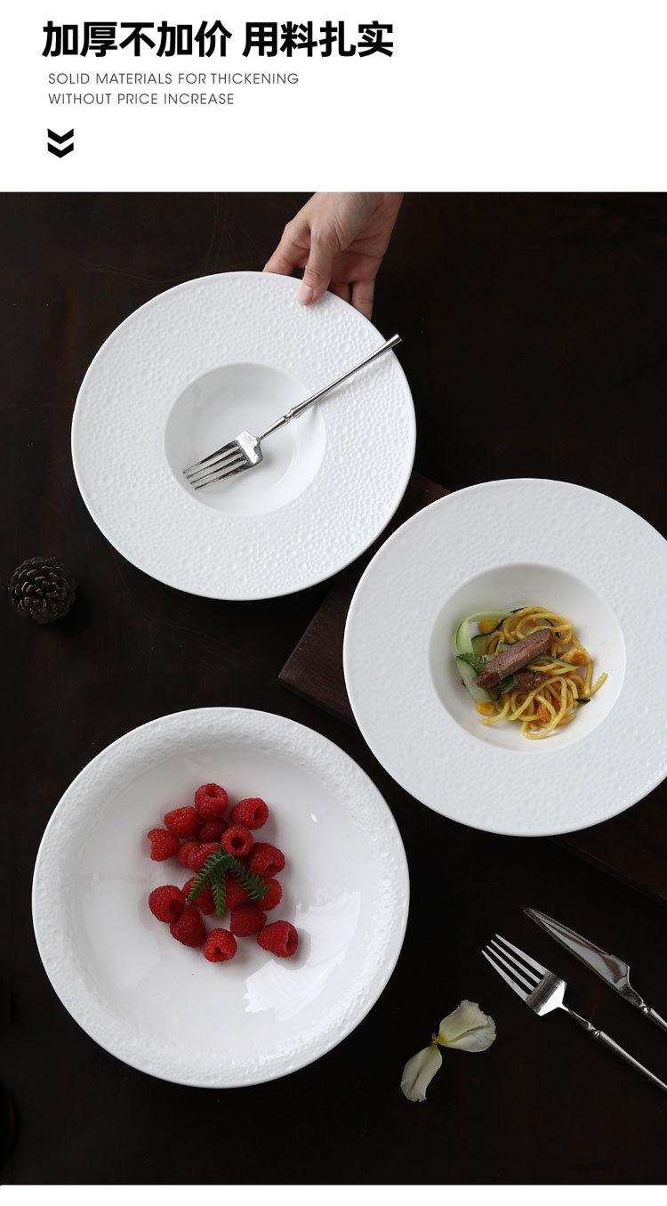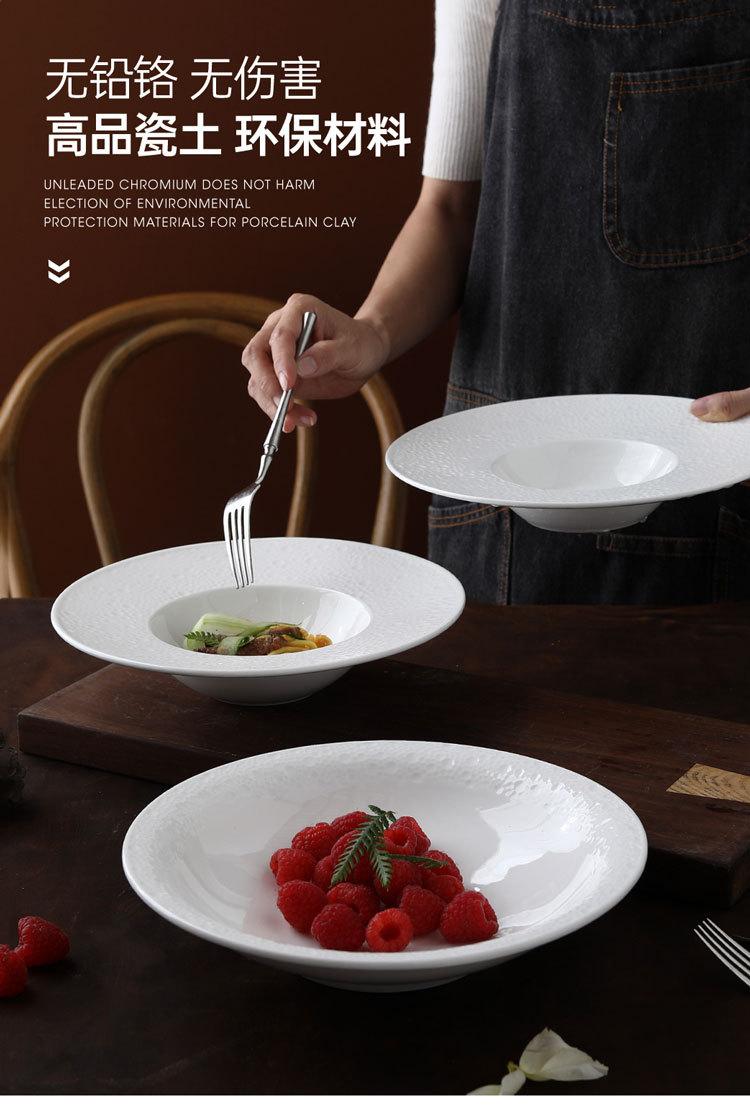 Plato de cerámica blanca pura con forma de sombrero de paja, plato para pasta, plato para dim sum, plato para comida occidental, vajilla sencilla de estilo europeo, plato para sopa para el hogar.