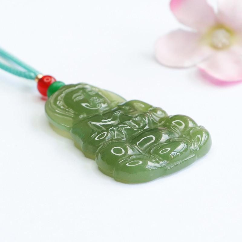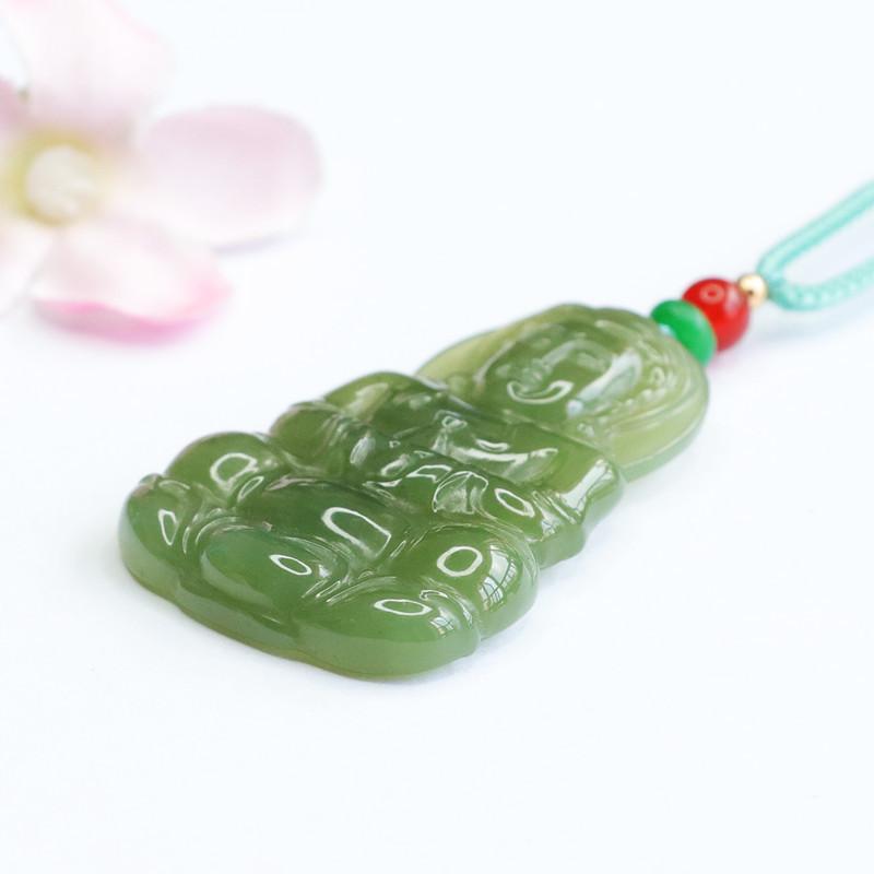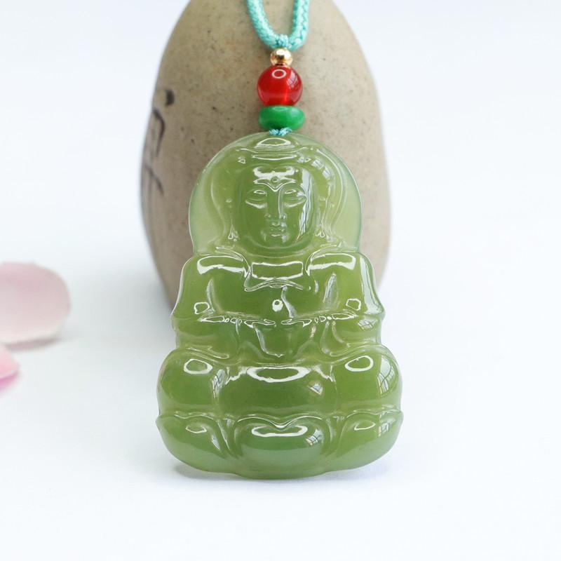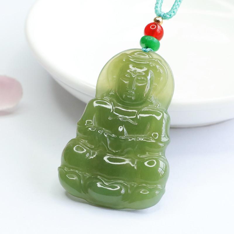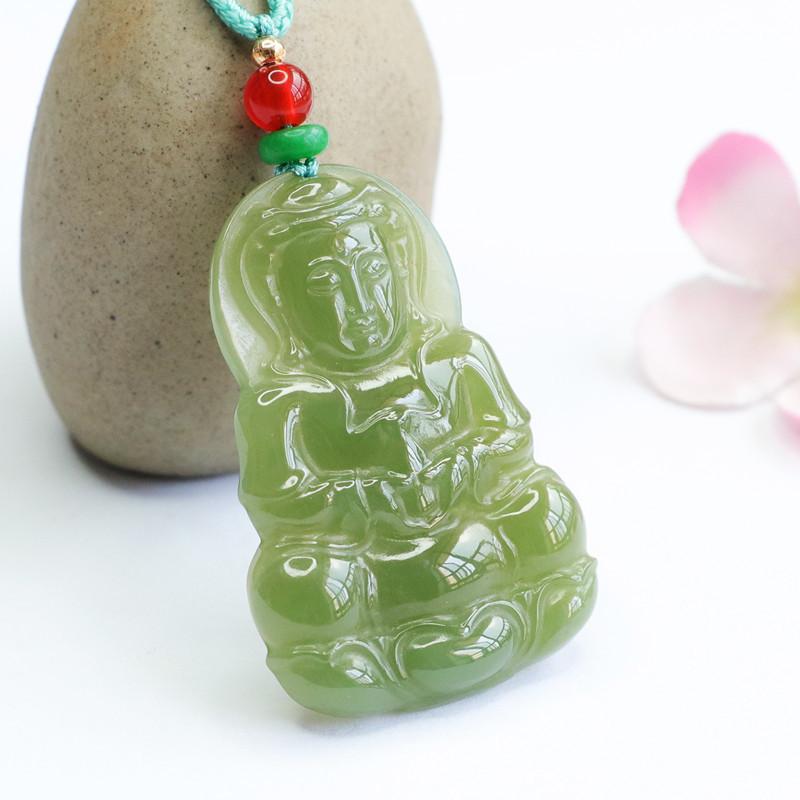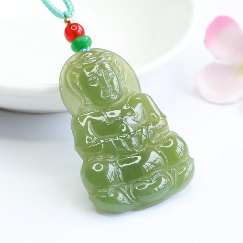Colgante de Jade Hetian Natural Guan Yu Verde Lago Ropa Formal Colgante Guanyin Bodhisattva Transmisión en Vivo Dropshipping S2041904