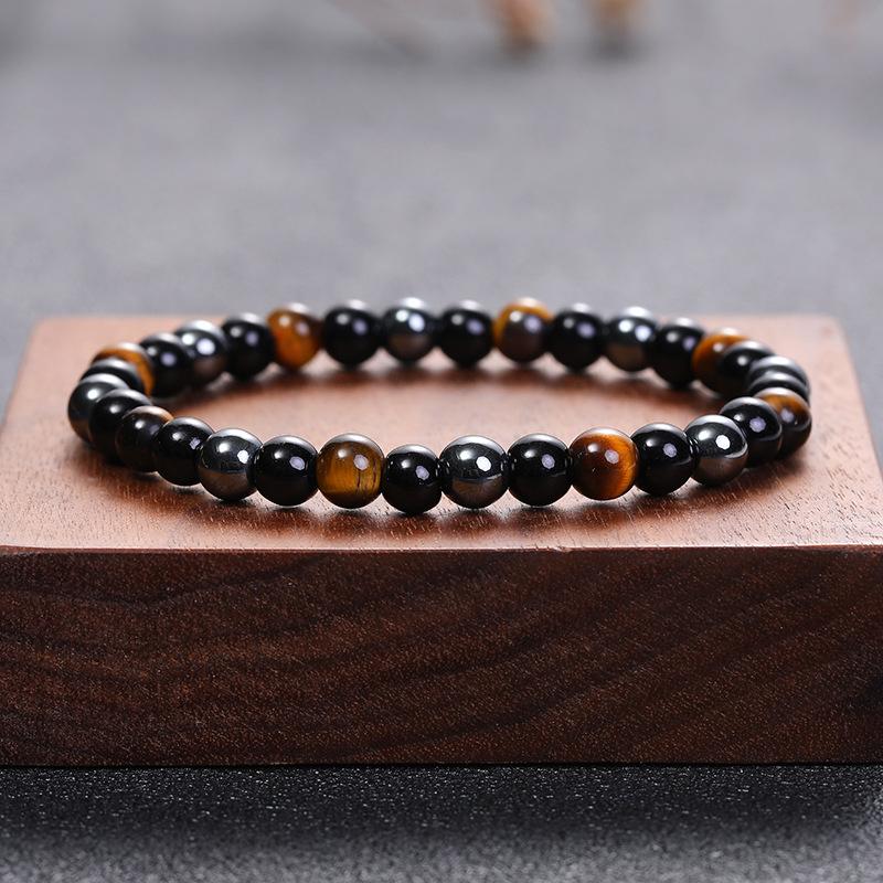 [Material[Calidad] Obsidiana de 6/8/10 mm + piedra de tigre + cálculo biliar negro+ Cuerda elástica