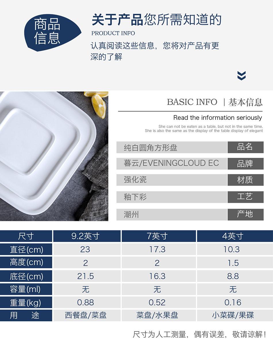 Vajilla de Cerámica Creativa Plato Plano para Bistec Plato para Pastel Plato para Desayuno Plato para Aperitivos Plato Cuadrado Restaurante Hotel Hecho a Medida