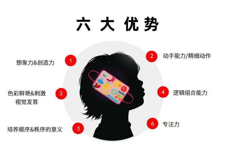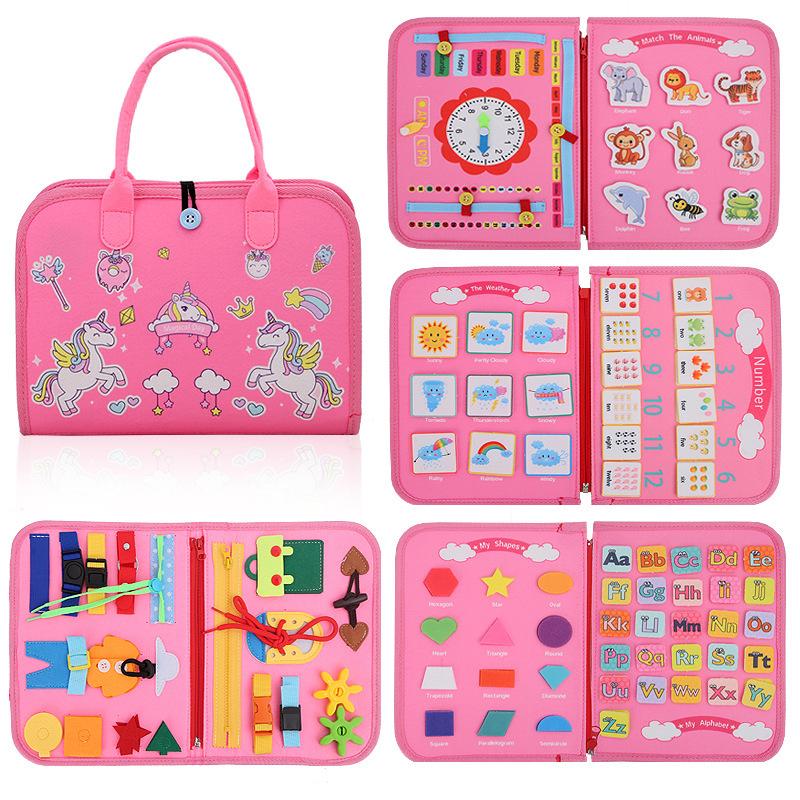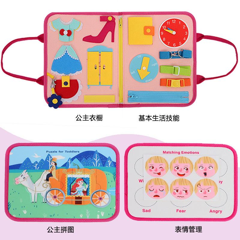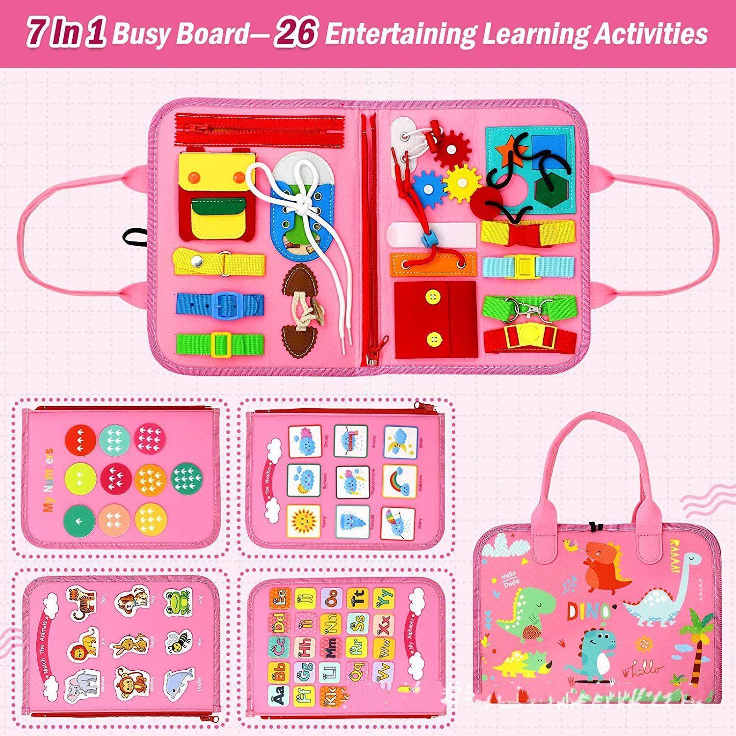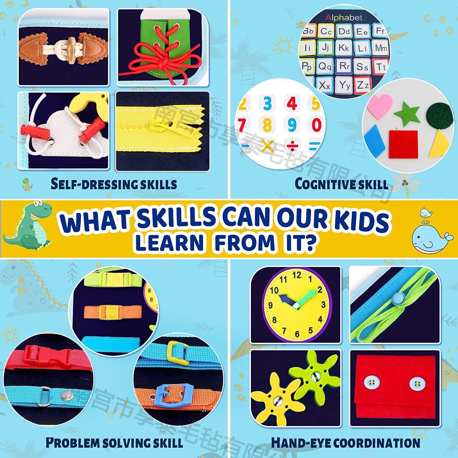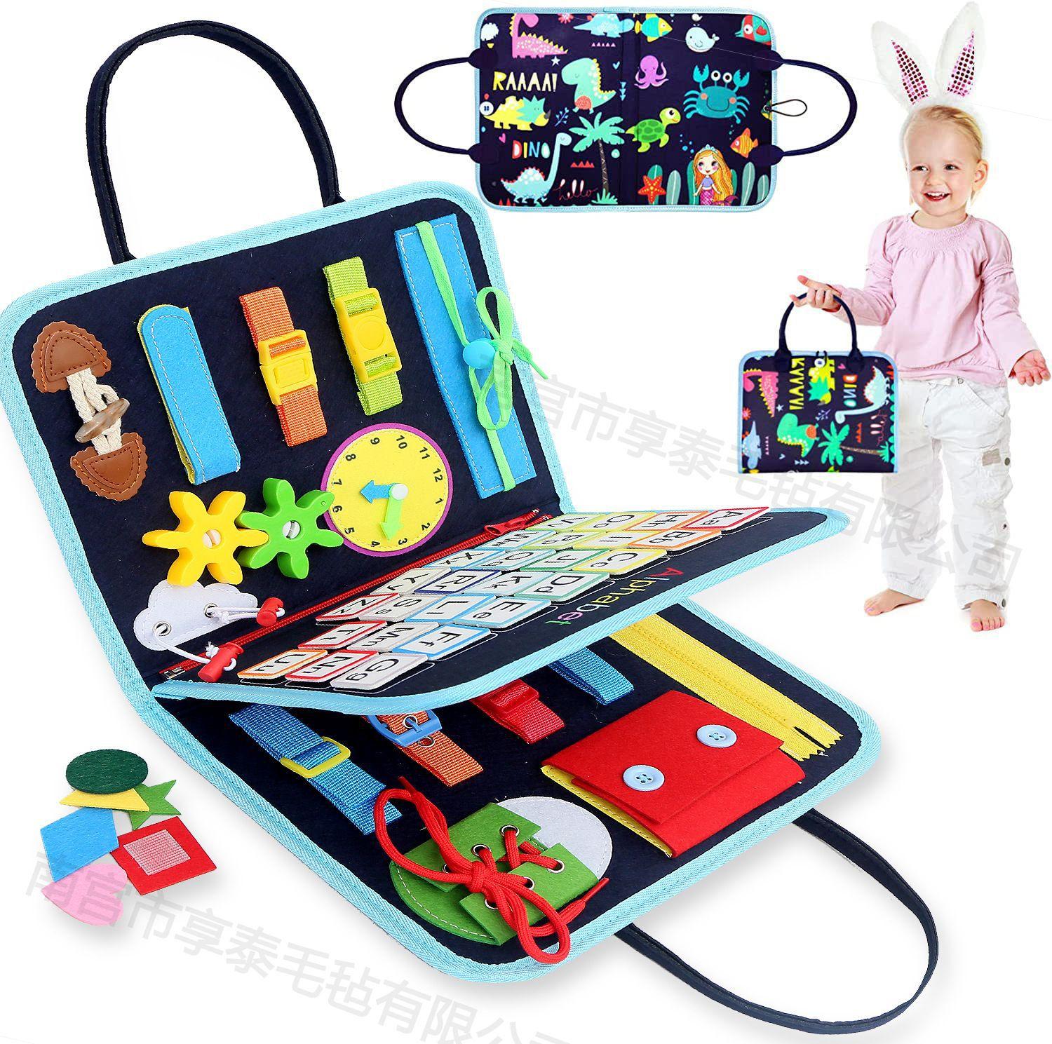 Tablero de actividades para niños siete en uno, tablero sensorial de educación de habilidades motoras para niños, tablero de aprendizaje de fieltro transfronterizo de Amazon