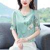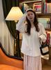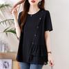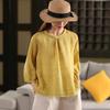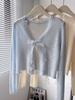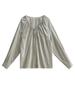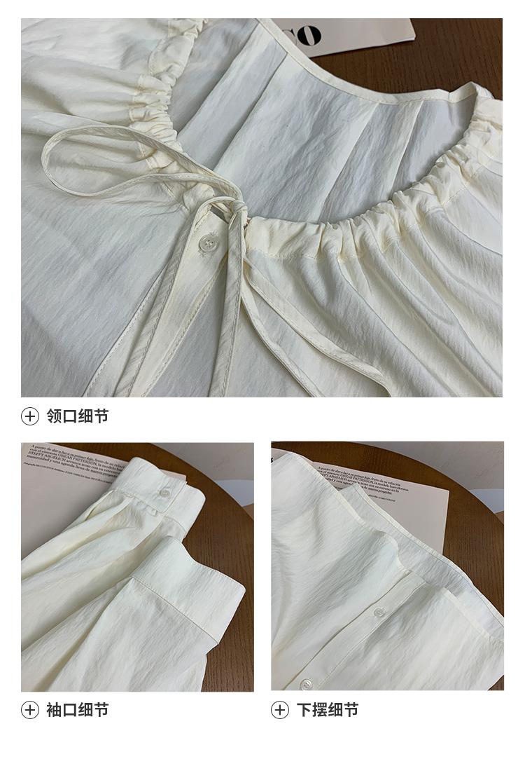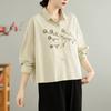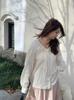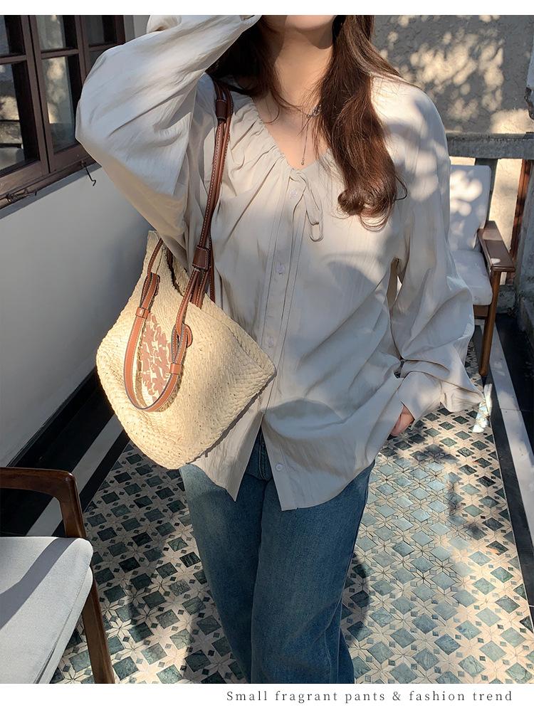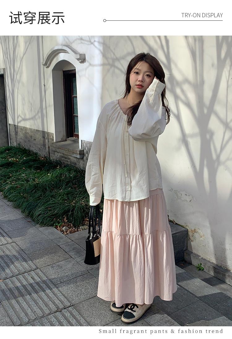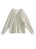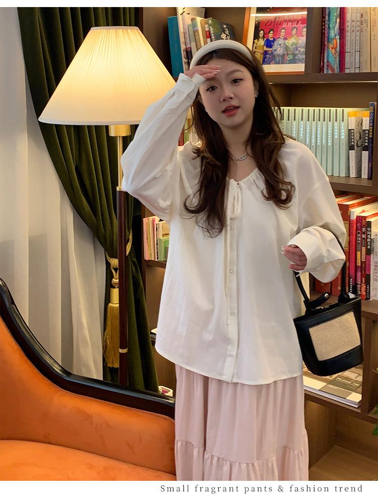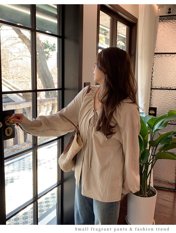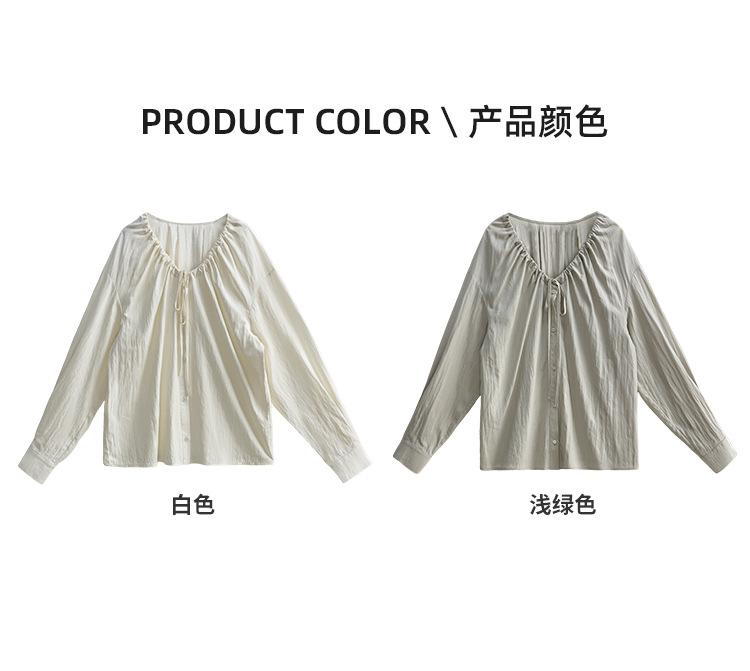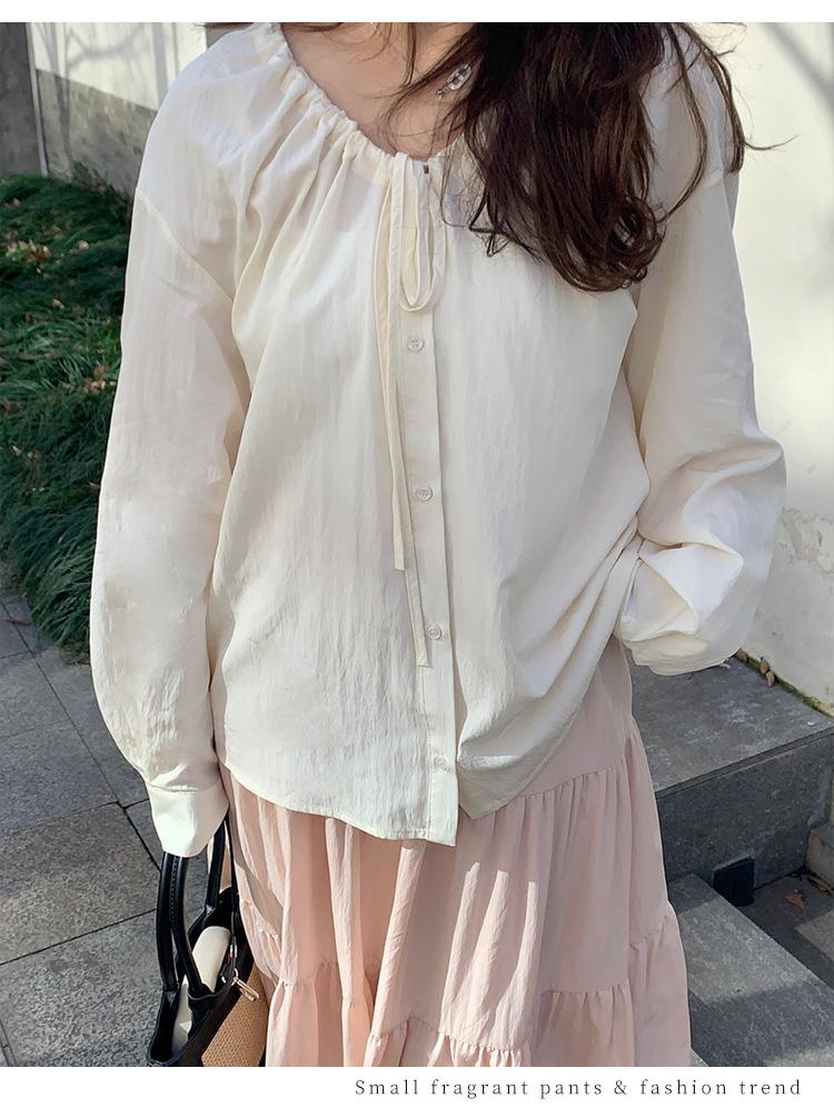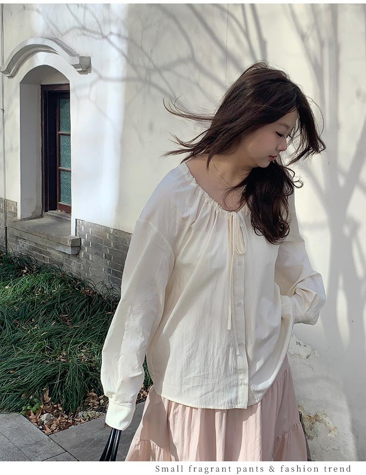 Elegante camisa de encaje con cordones y cuello en V para mujer de talla grande, diseño cómodo y holgado de manga larga estilo dama