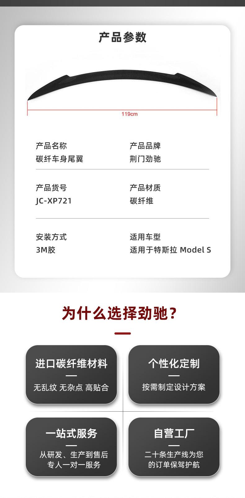 Aplicable a 12-19 Tesla MODEL S alerón superior trasero de fibra de carbono modificado ala fija