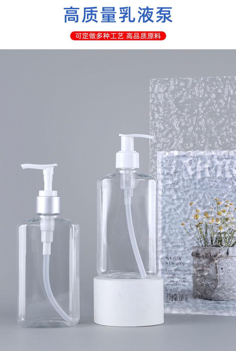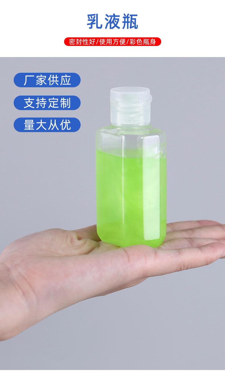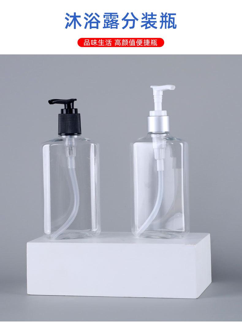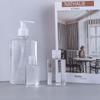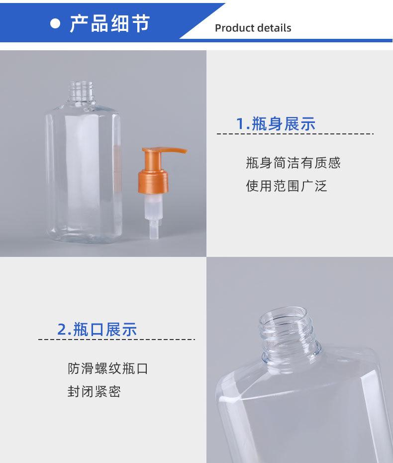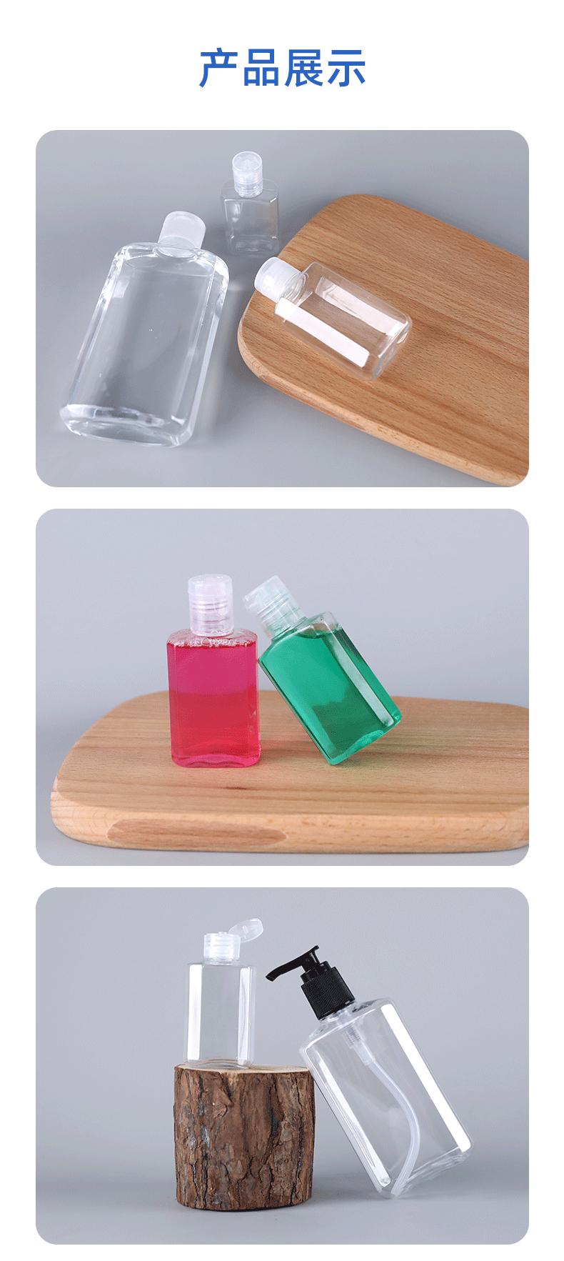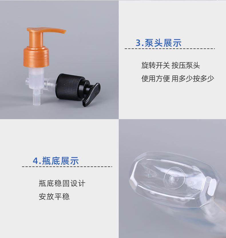 Botella octogonal de plástico transparente PET con tapa abatible, desinfectante de manos en gel, botella de agua, loción, champú y prensa.