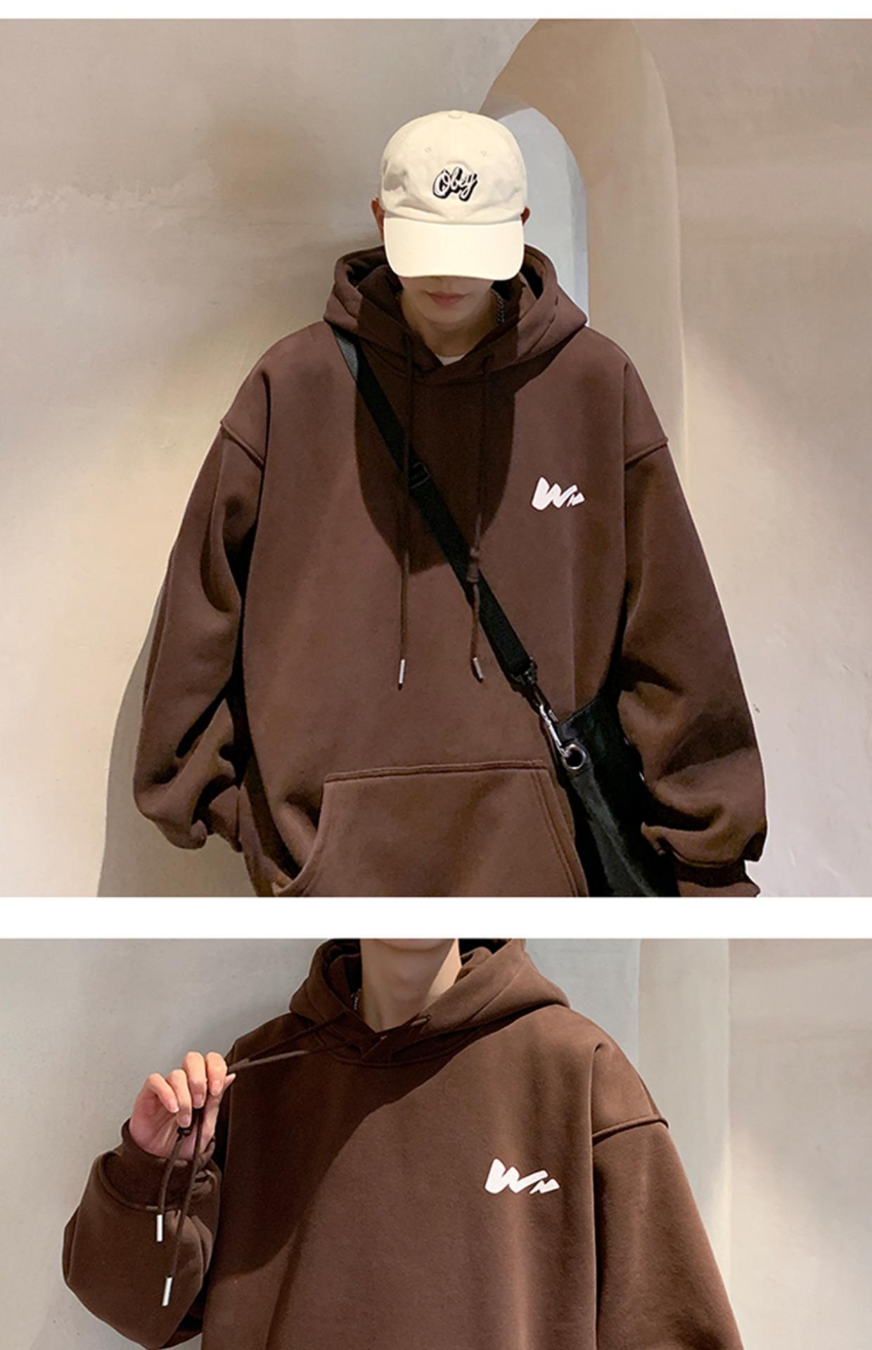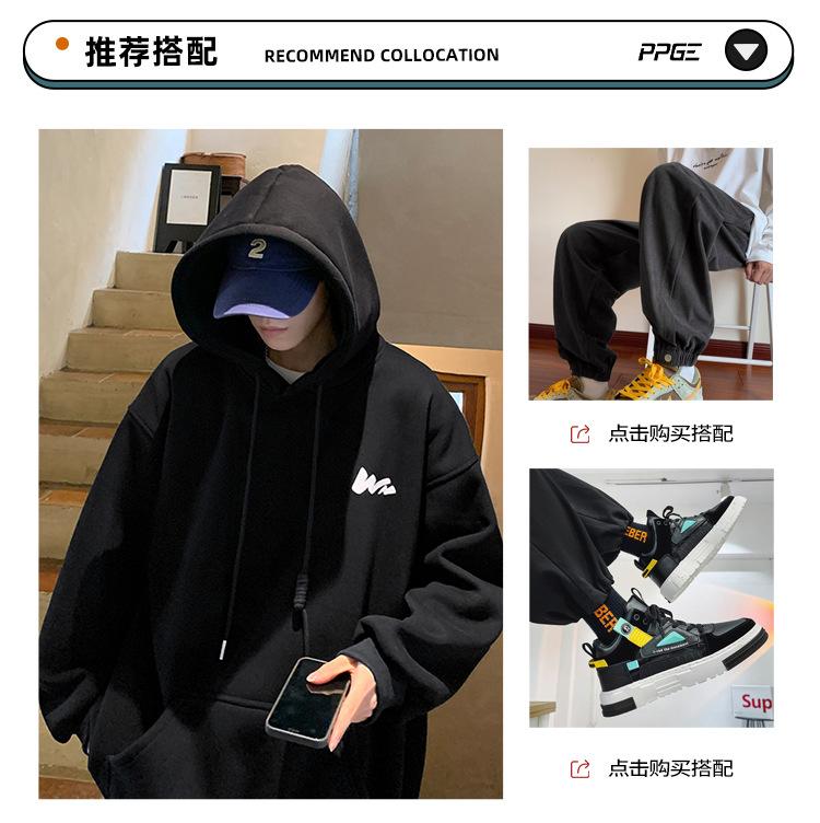 Sudadera con capucha para hombre, forro polar, gruesa, de invierno, de marca, de moda, de peso pesado, holgada, estilo americano, estilo retro, informal, de calle alta, chaqueta tipo pulóver