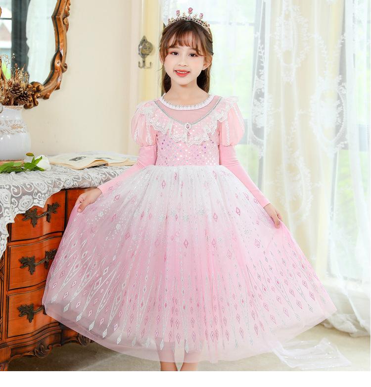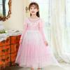 Vestido de princesa Frozen 2024, vestido largo con estampado de lazo para niñas, vestido infantil Elsa, falda Elsa