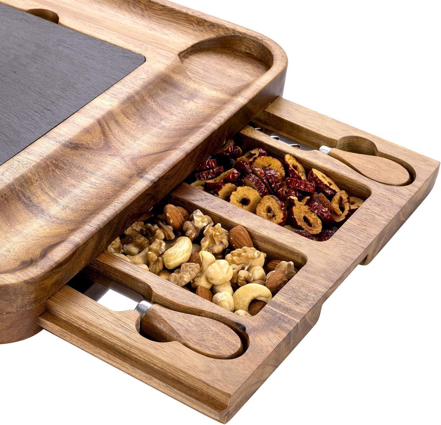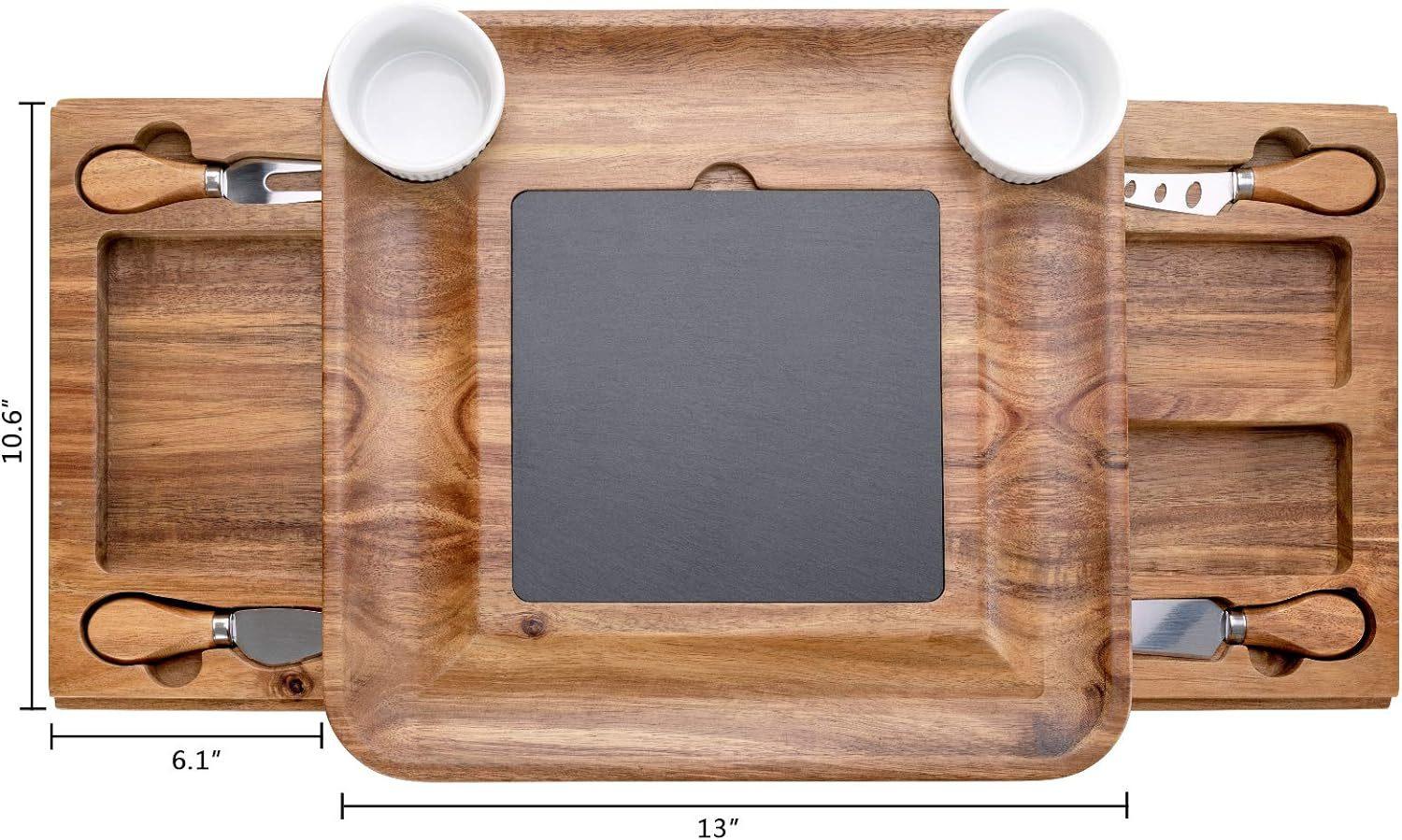 Juego de tabla y plato de quesos - Fabricado en madera de acacia - 13 pulgadas (Aproximadamente 33 cm) Tabla para cortar queso