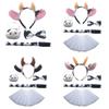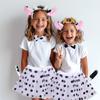 Super Soft Black and White Ear Coffee Horn Cow 4-Piece Set White Gauze Skirt with Black Dot
