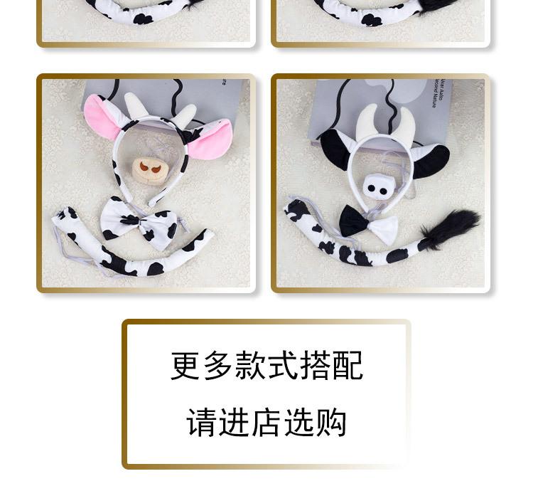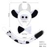 Super soft black and white ear coffee horn cow 4 piece set (Velcro with fur tail)