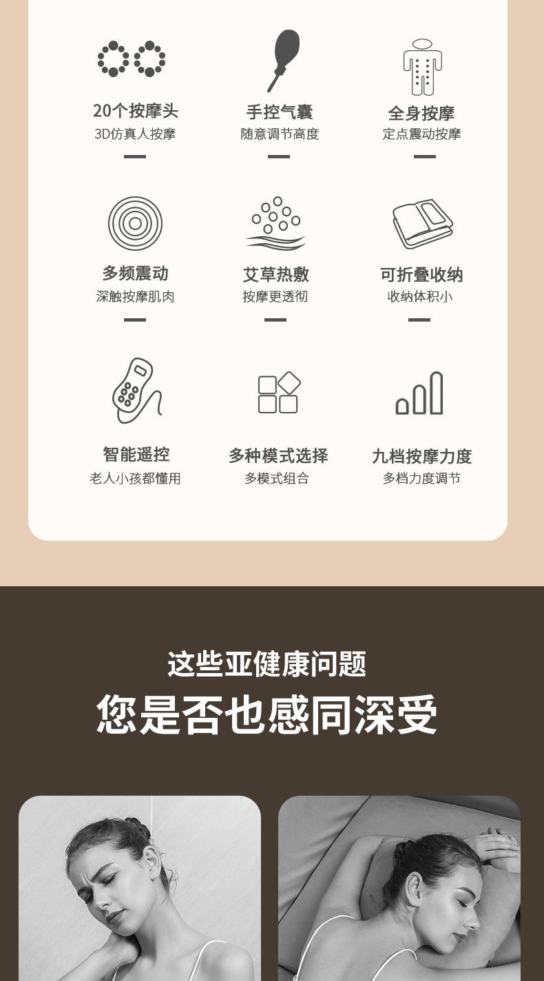 Masajeador de Columna Cervical Cuello Cintura Multifuncional Inteligente Colchón de Masaje Hogar Amasamiento Cuello y Cintura Cojín de Bolsa de Aire Cojín para Silla