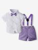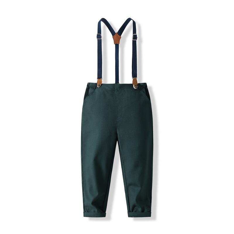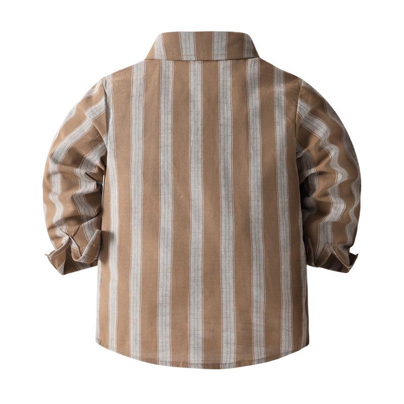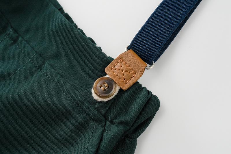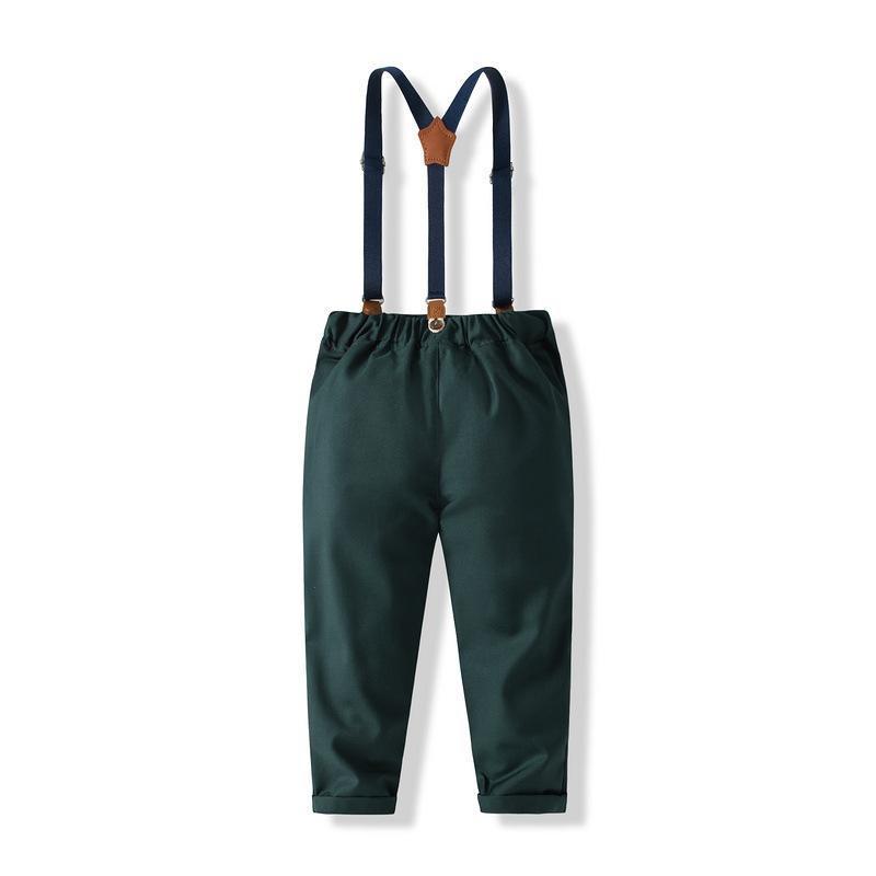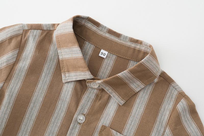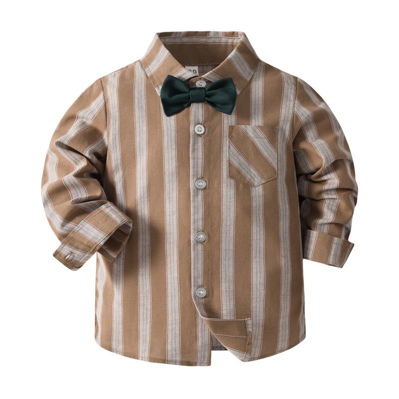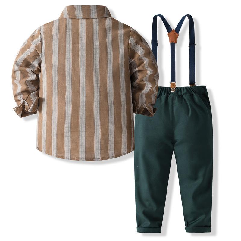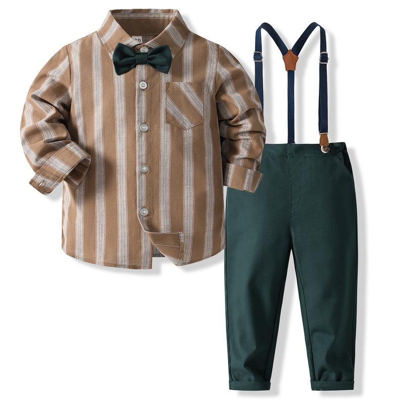 FUENTE Suministro de primera mano de fábrica primavera nuevo traje de niño estilo europeo y americano camisa de manga larga a rayas pantalones con tirantes ropa de niño