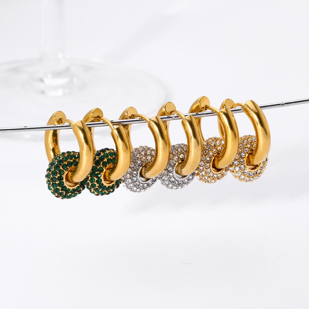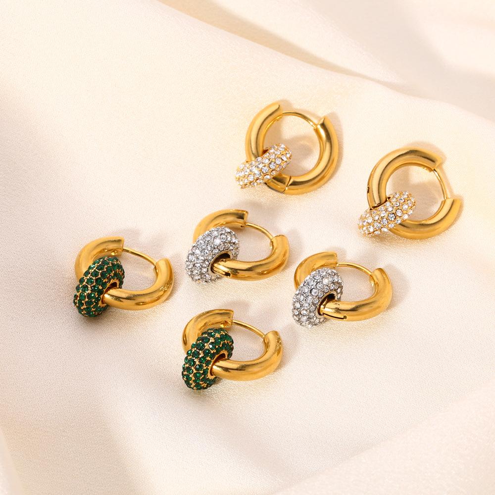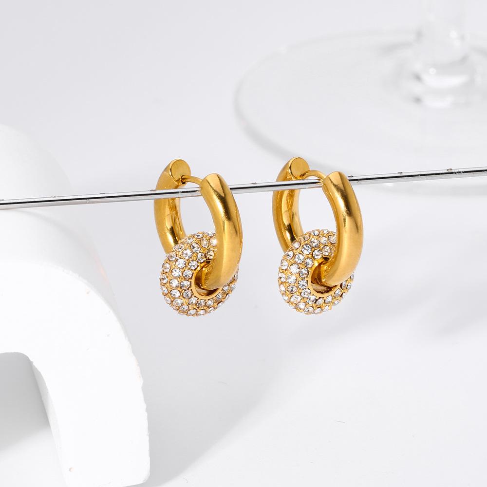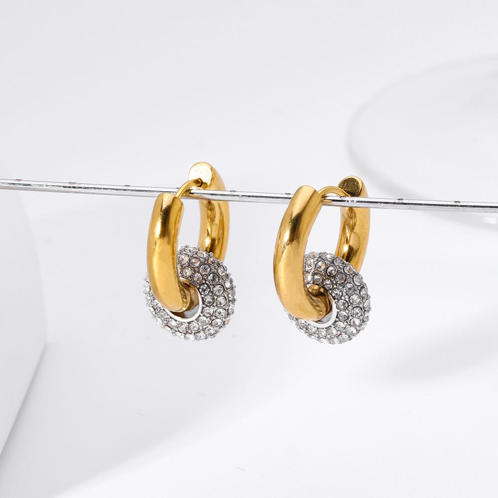 Pendientes INS estilo retro francés europeo y americano para mujer, sencillos, combinables, de acero inoxidable en oro de 18 quilates, con diamantes repletos de detalles, desmontables, joyería
