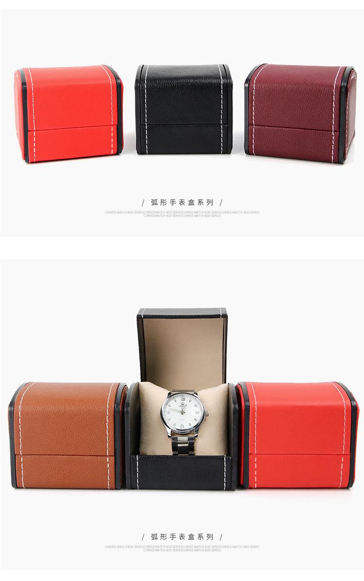 Black pu leather watch box; curved watch box, Red pu leather watch box; curved watch box, Brown pu leather wat...