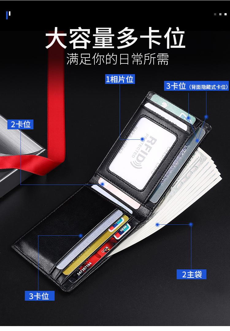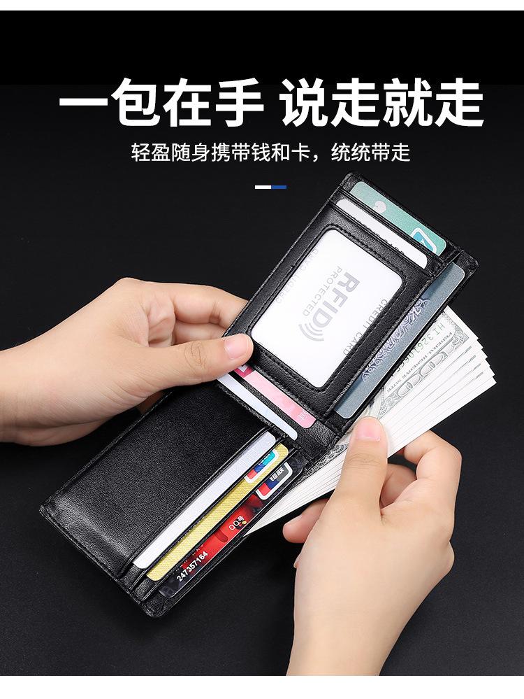 Billetera de Cuero para Hombre con RFID Transfronteriza Soporte para Tarjetas Selección Amazon Explosiones Capa Superior Piel de Vaca Billetera Antimagnética Venta al por Mayor