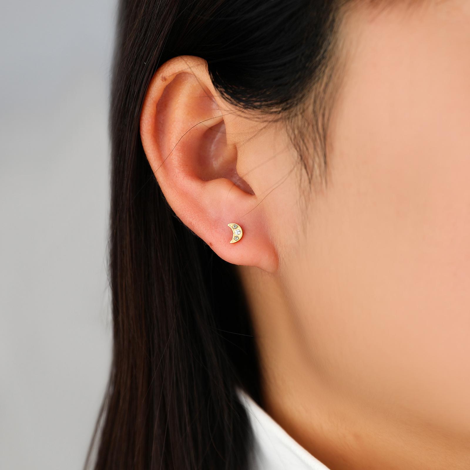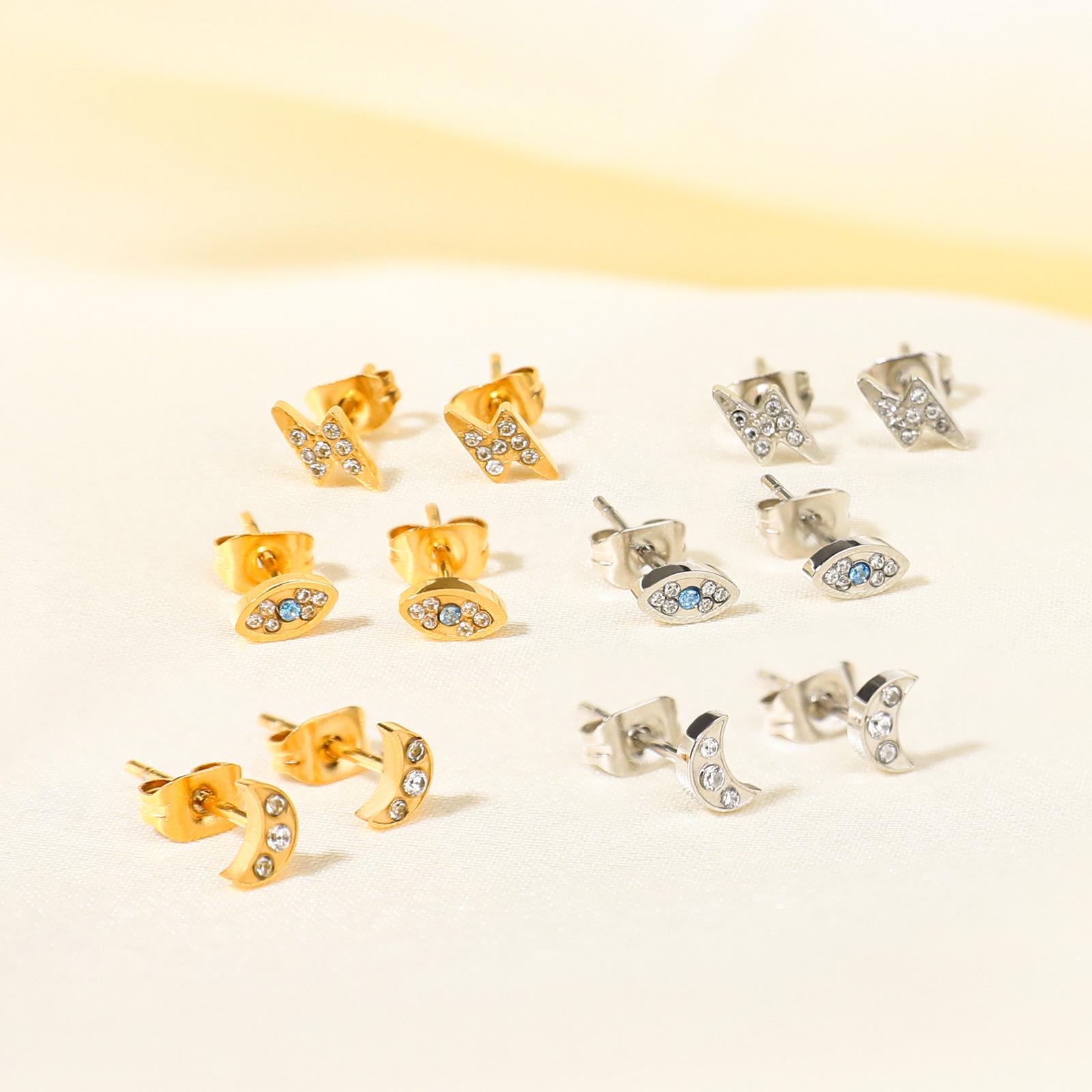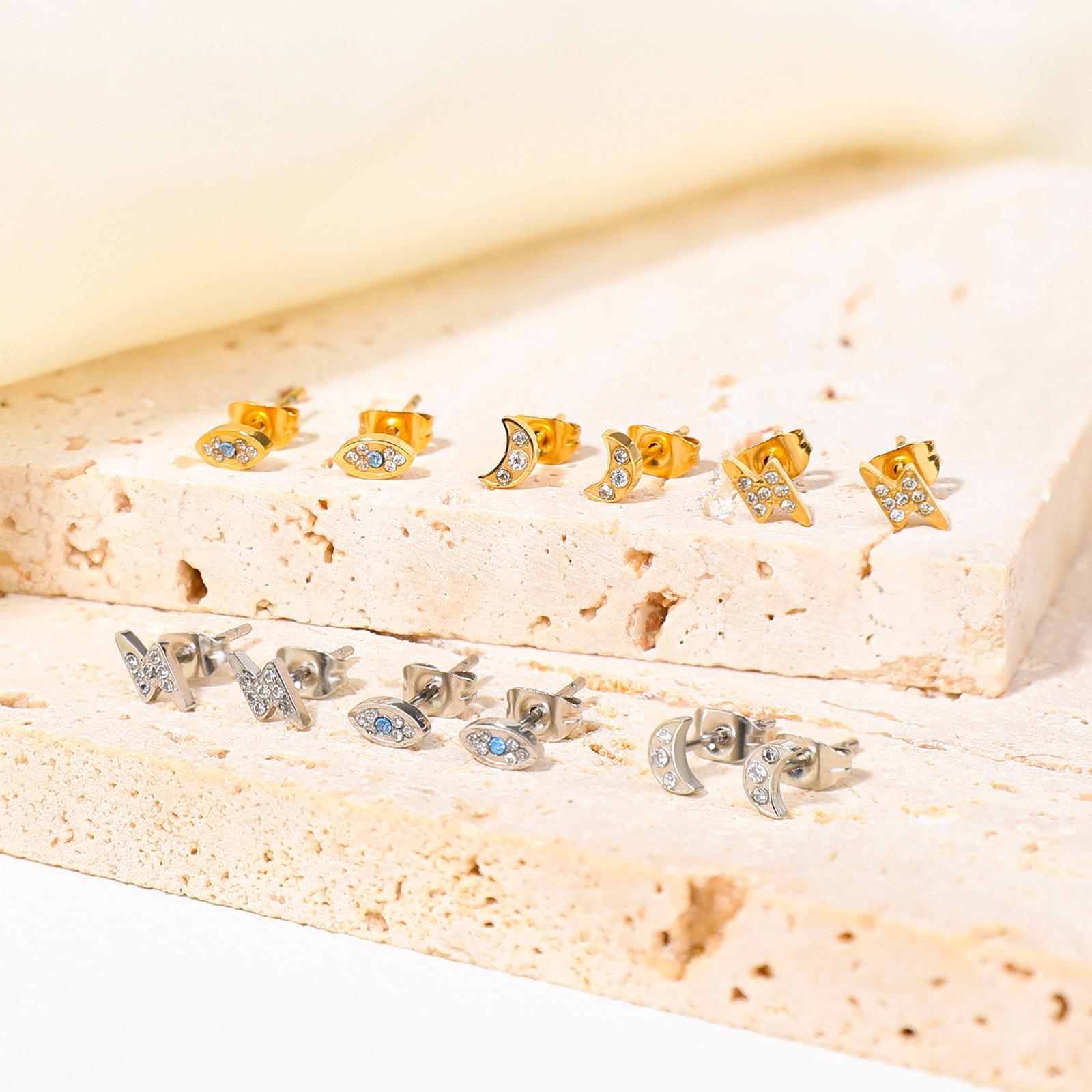 Pendientes de acero de titanio con incrustaciones de circonita de alta calidad con forma de nicho y diseño de luna simple transfronteriza, un lote