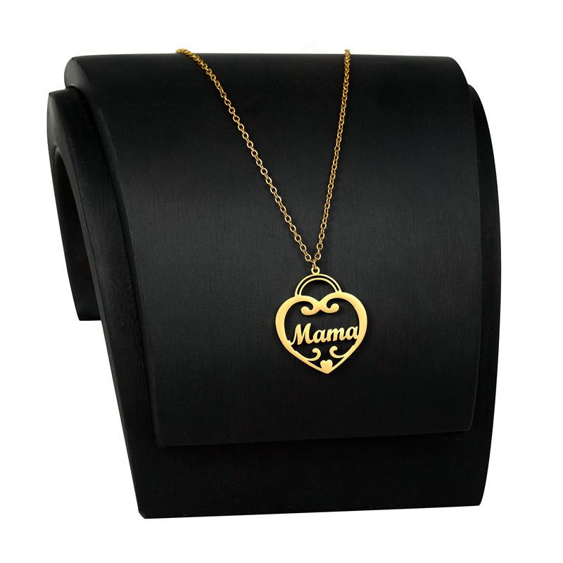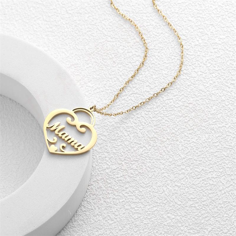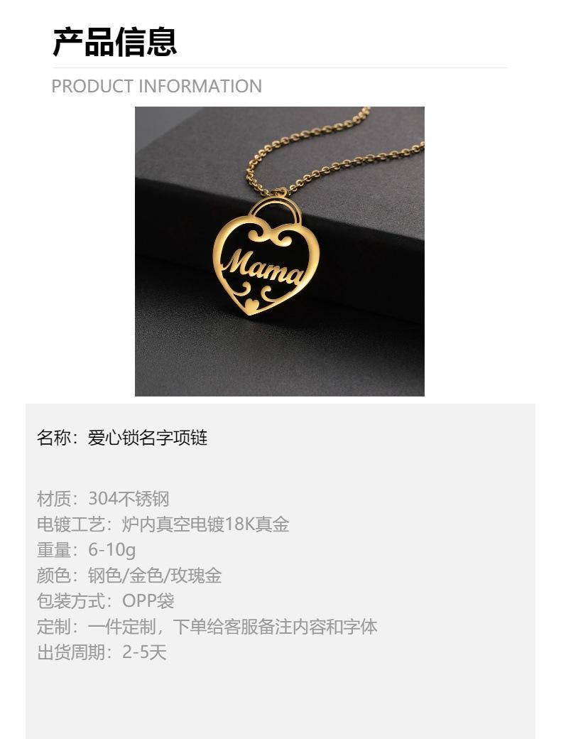 [Personalización de una pieza] Collar con colgante de corazón y candado con letras inglesas de acero inoxidable y nombre chapado en oro de 18 quilates.