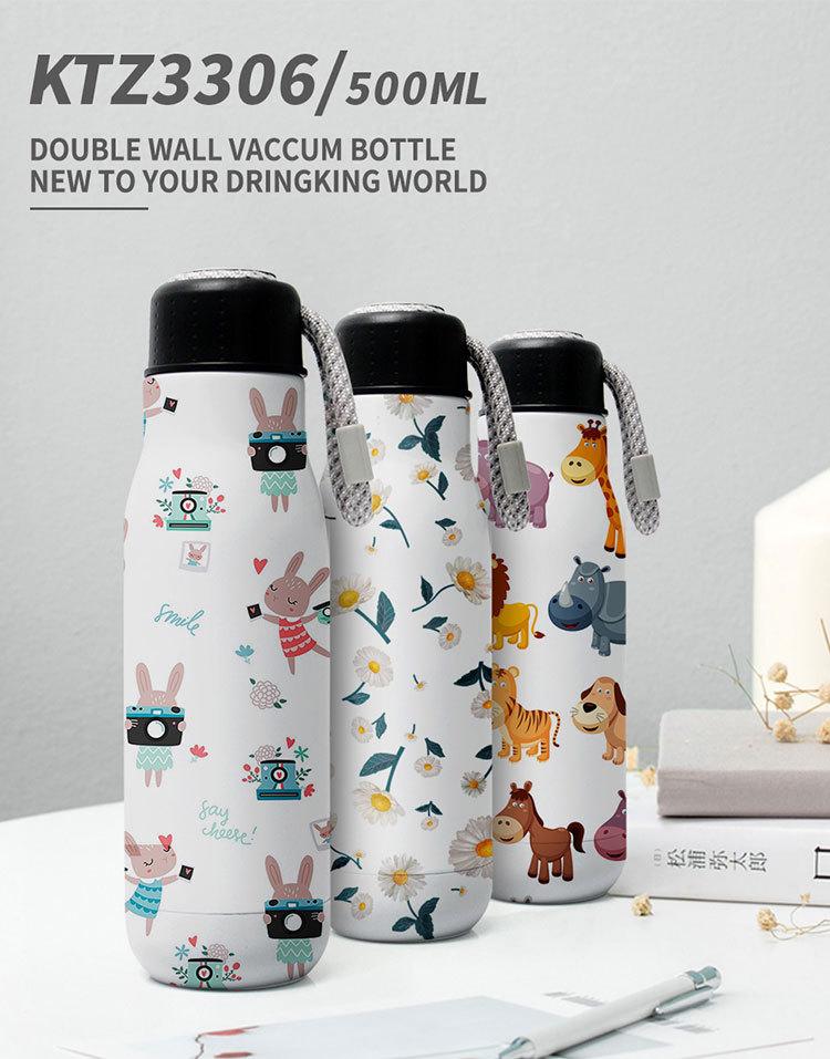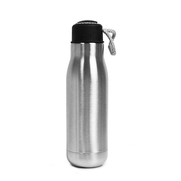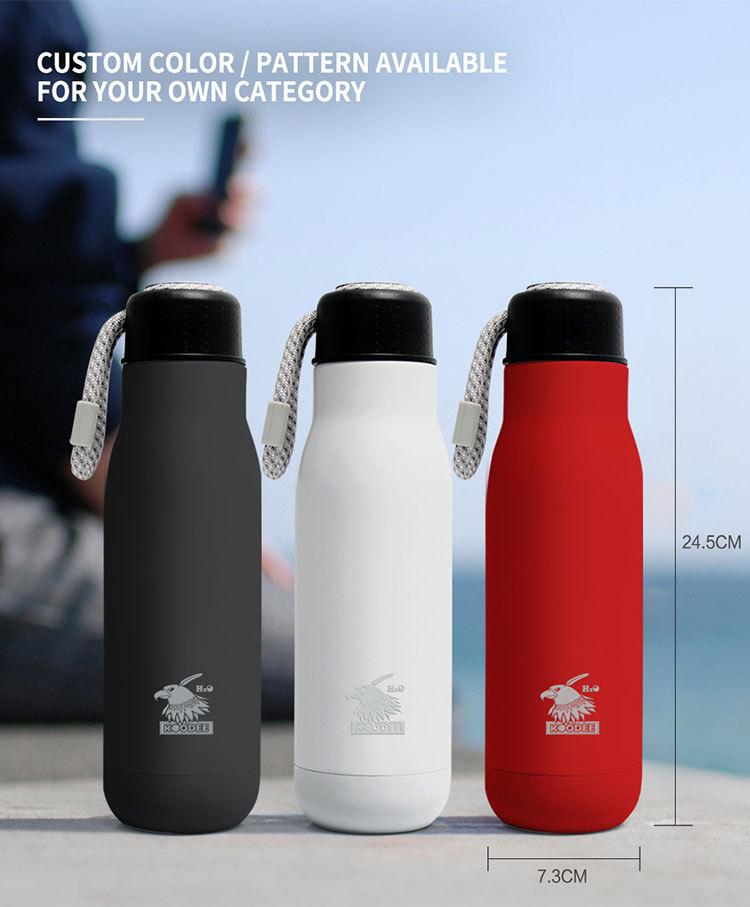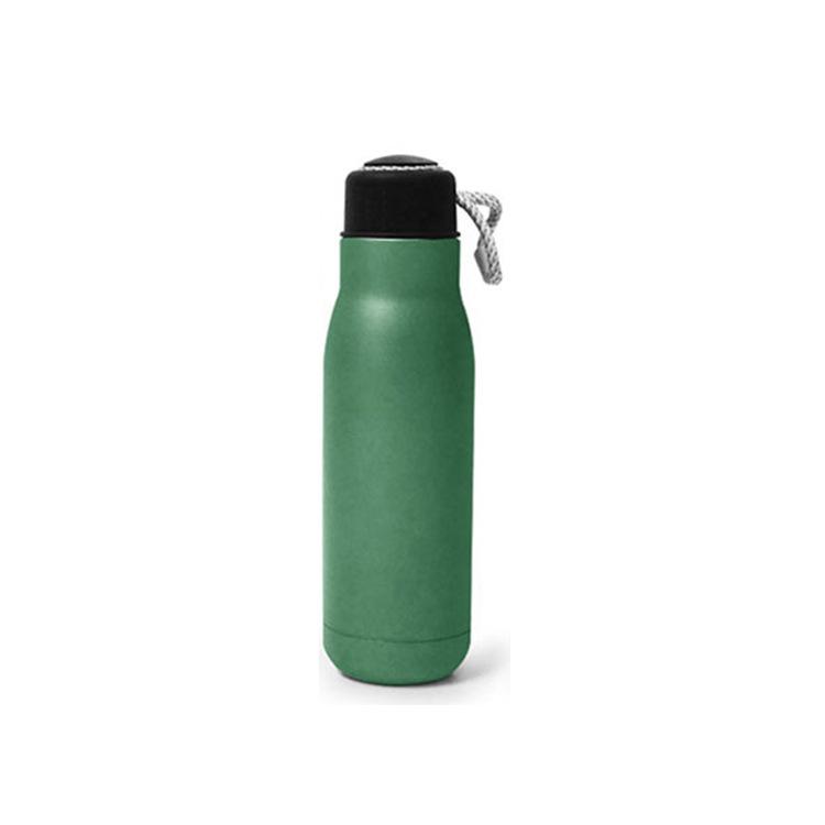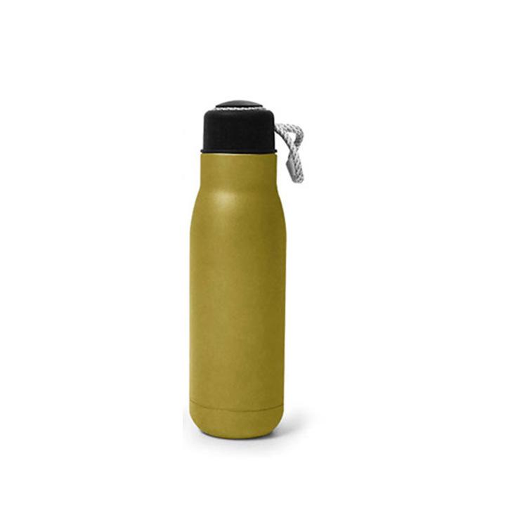 Botella de agua de acero inoxidable de doble capa con aislamiento al vacío, con potente asa de cuerda de algodón personalizada, revestimiento de grado alimenticio seguro para beber