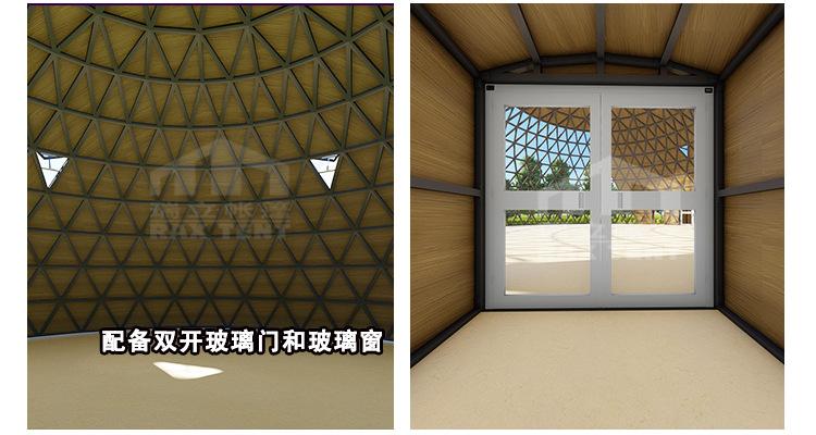 La parte de vidrio templado de esta cúpula de vidrio de madera se utiliza para la visualización y la iluminación, y la parte de madera se utiliza para los baños y la protección de la privacidad.